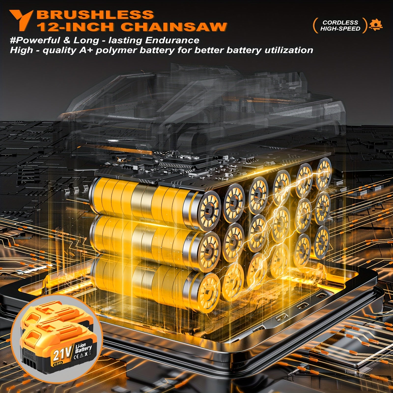 High-Torque Brushless Motor | Dual 21V Li-ion Batteries | Fast Tree & Wood Cutting