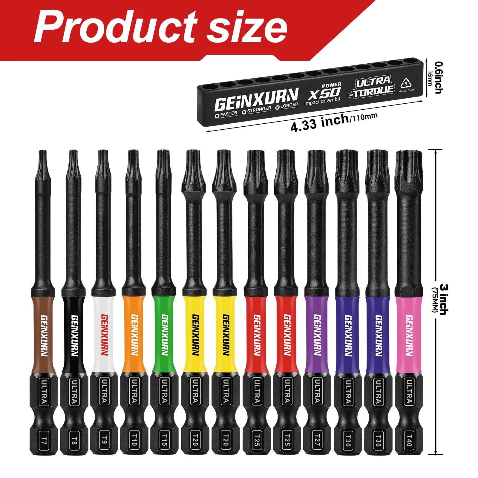 Upgrade your toolkit with this 13-piece Torx screwdriver bit set. Made from premium S2 alloy steel, these impact-rated bits are heat-treated for maximum hardness and durability. The torsion zone absorbs high torque, preventing breakage and ensuring 30X longer lifespan compared to standard bits. Color-coded organization makes identifying and selecting the right bit fast and effortless.