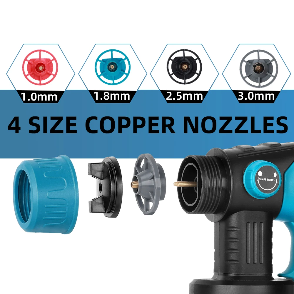 With a large 1000ml paint cup, adjustable flow control, and four interchangeable copper nozzles, it’s perfect for furniture, fences, cabinets, walls, doors, and DIY projects of all sizes.