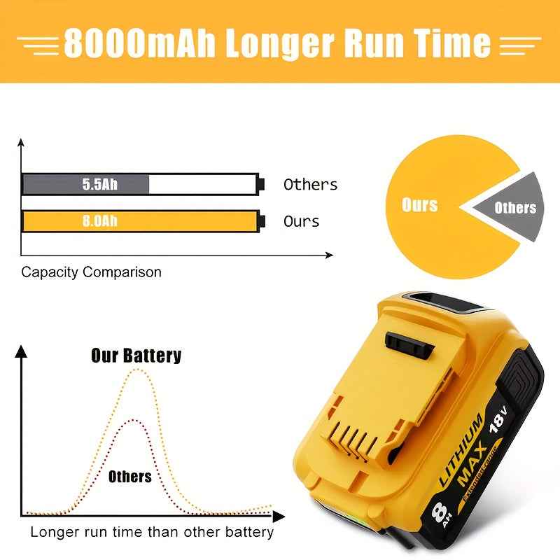 • High Capacity (8.0 Ah / 8000 mAh) – Enjoy up to 40 % longer runtime for demanding tasks.