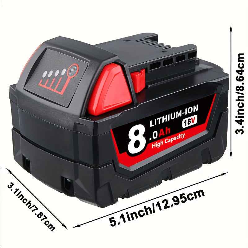 Power through demanding jobs with this 2-pack of 18 V 8.0 Ah high-output lithium-ion batteries, precision-engineered for Milwaukee M18 cordless tools. Each pack delivers long-lasting, fade-free energy, ensuring your drills, saws, and grinders keep running strong through the toughest conditions.