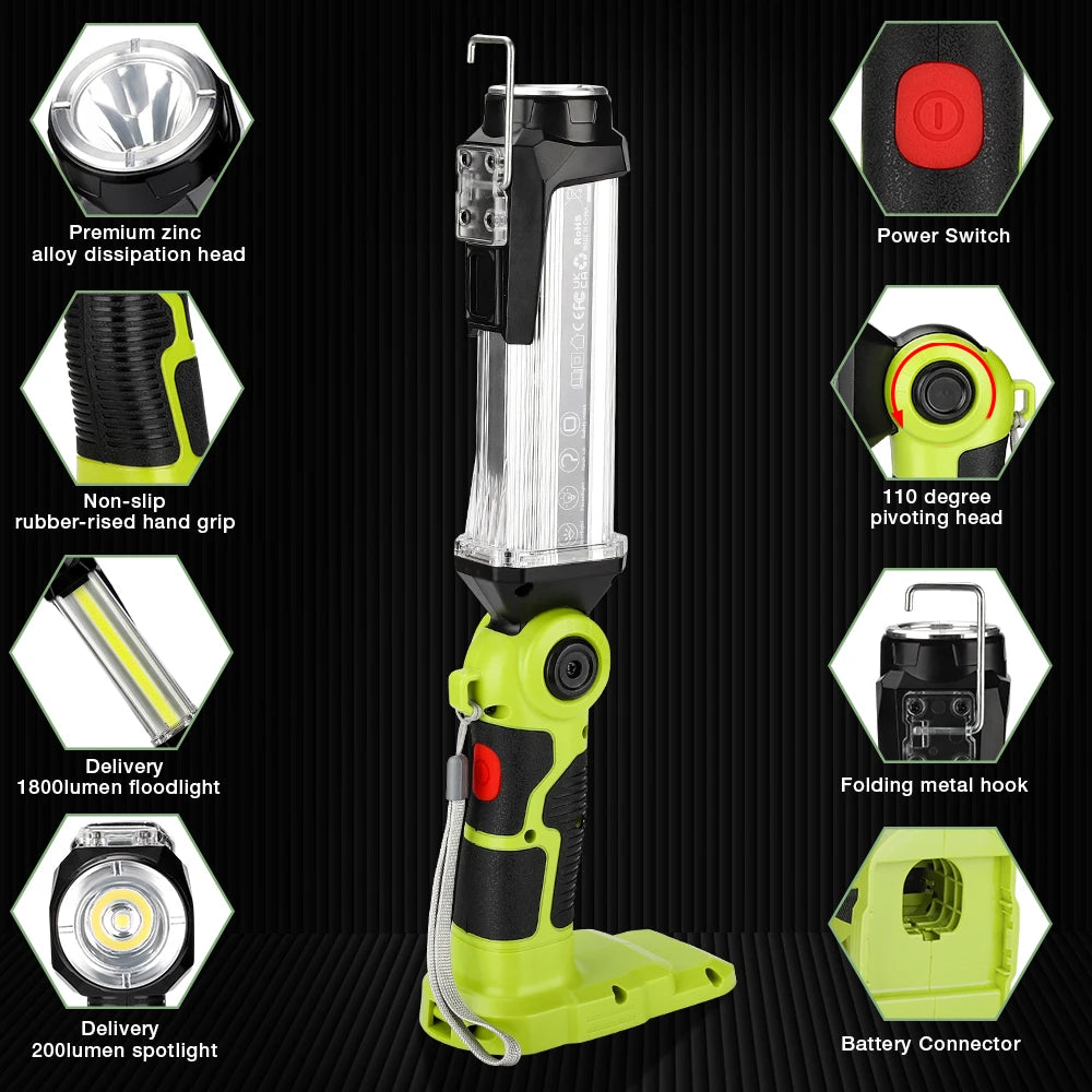 🔦 2000LM LED Work Light – Cordless Spotlight Compatible with Ryobi, Dewalt, Makita & Milwaukee Batteries