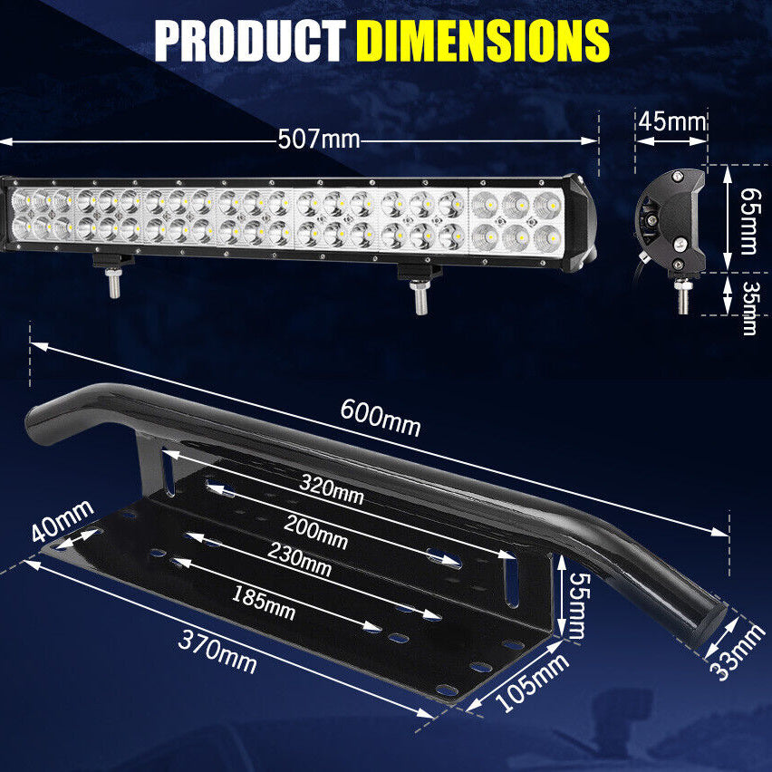 Universal mounting brackets included for a fast, secure fit on bull bars, roof racks, bumpers or roll cages.