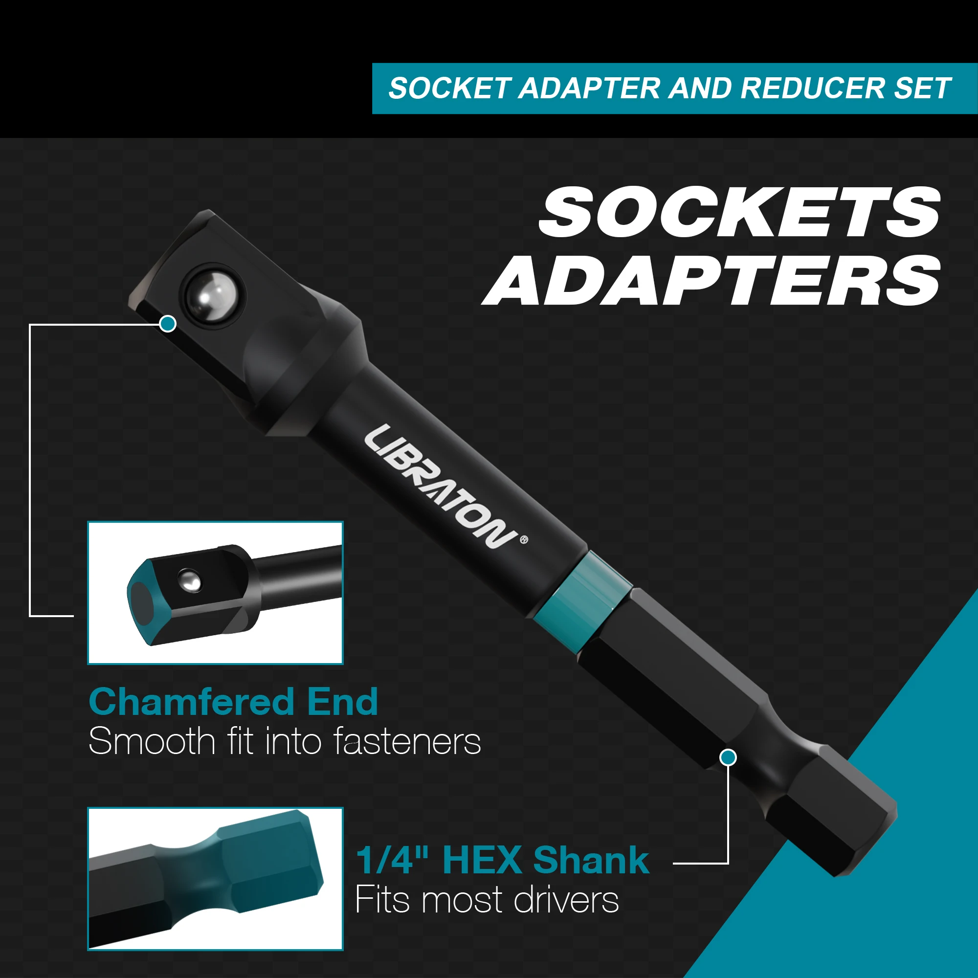 Use the universal joints for tight corners, the reducers to adapt drive sizes, and the hex shank adapters to extend reach. Perfect for any ratchet or impact wrench, this set keeps your toolkit ready for any repair or maintenance task.