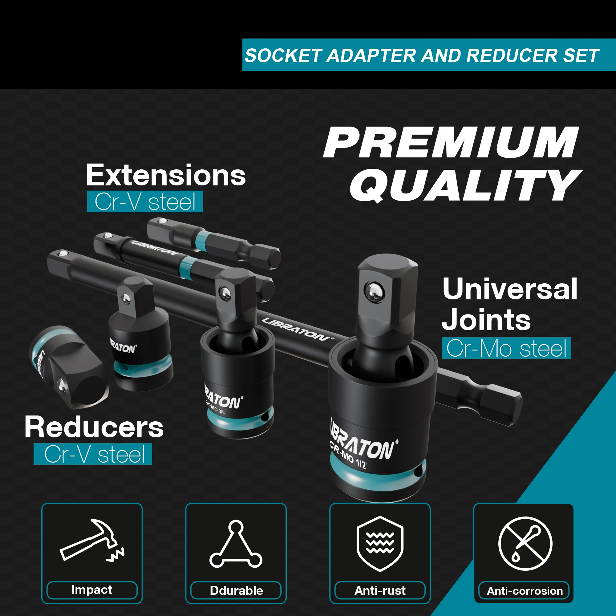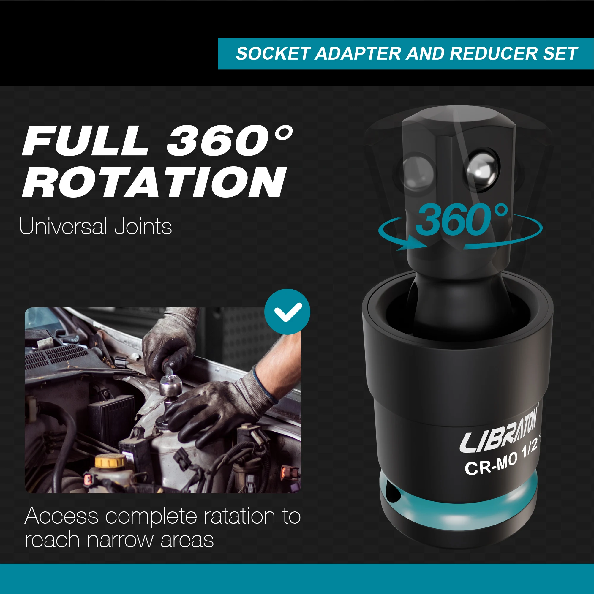 Perfect for mechanics, DIYers, and professionals. Includes socket adapters, reducers, and universal joints for maximum versatility with your impact wrenches and ratchets.