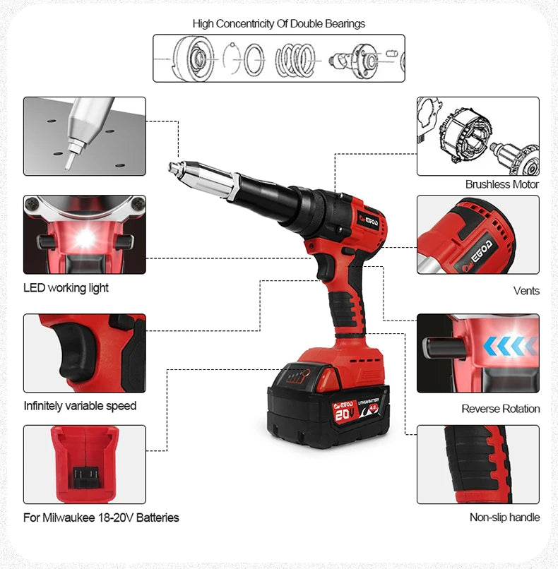 🔧 20V Brushless Auto Rivet Gun – 3.2–4.8mm Cordless Riveting Tool