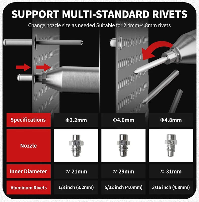 • Supported Rivet Sizes: 3.2mm / 4.0mm / 4.8mm