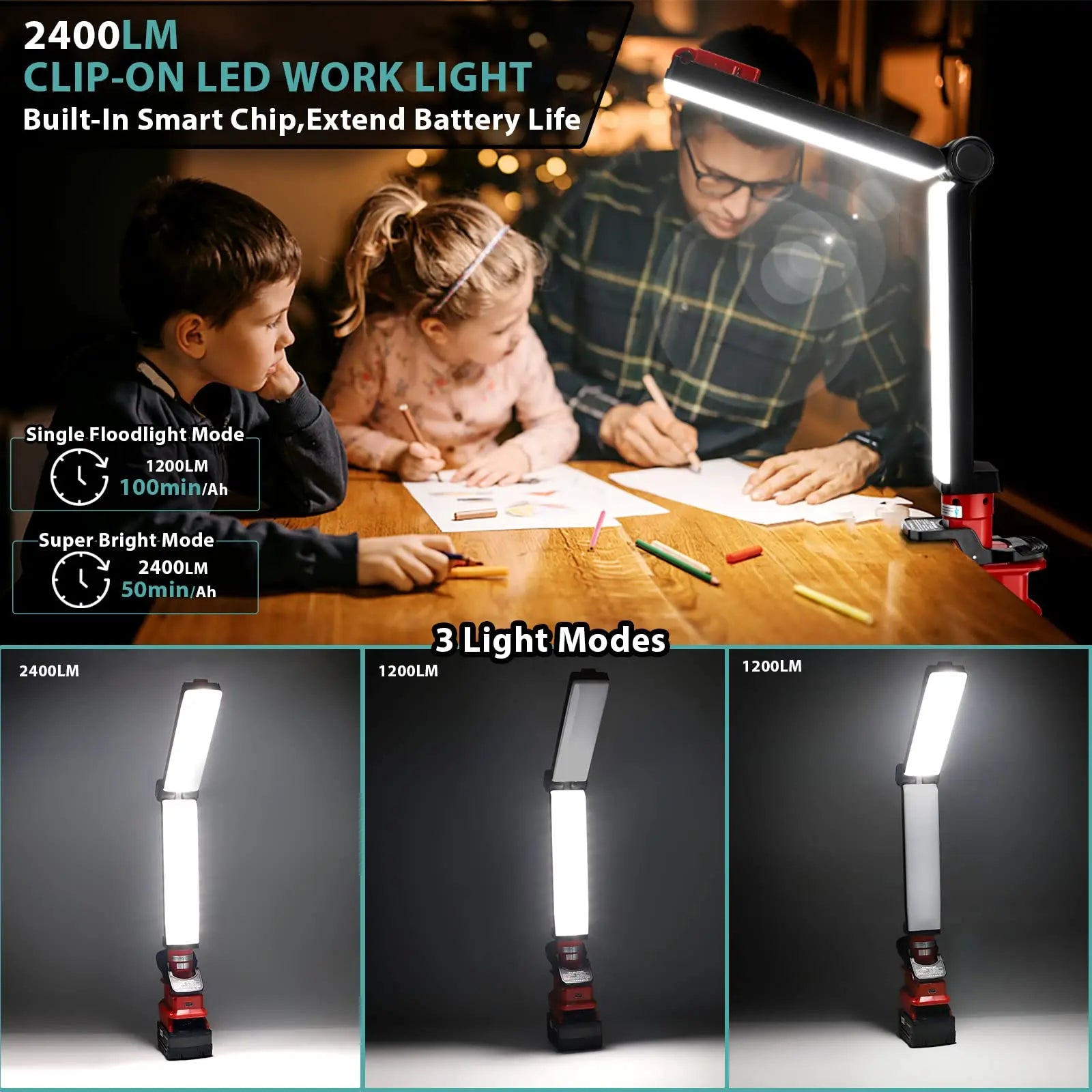 🔧 2400LM Cordless LED Work Light – 18V System with USB Power Bank