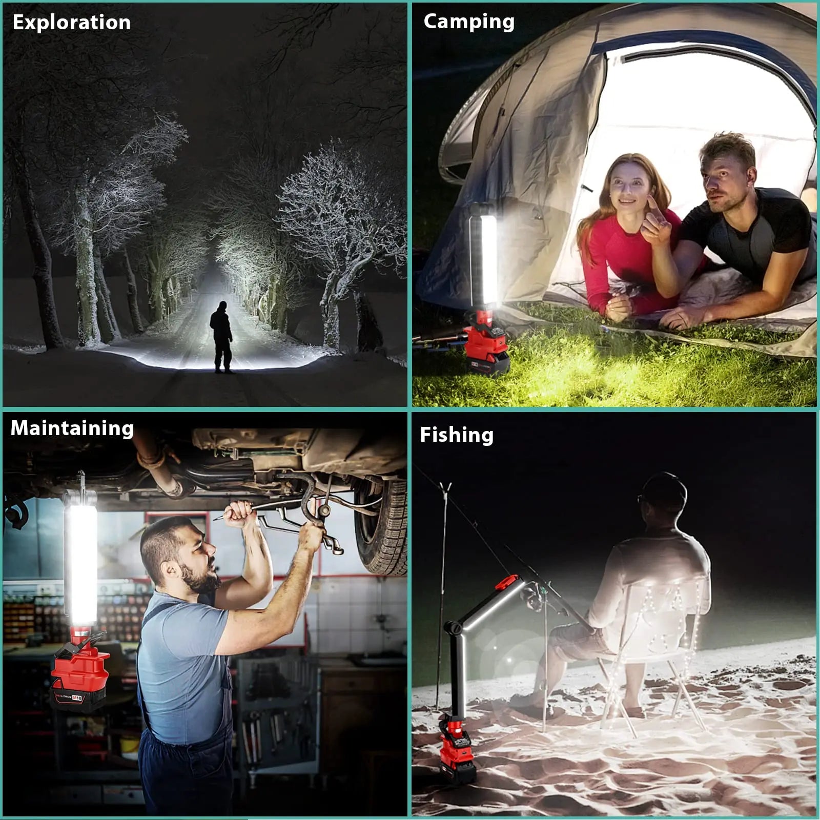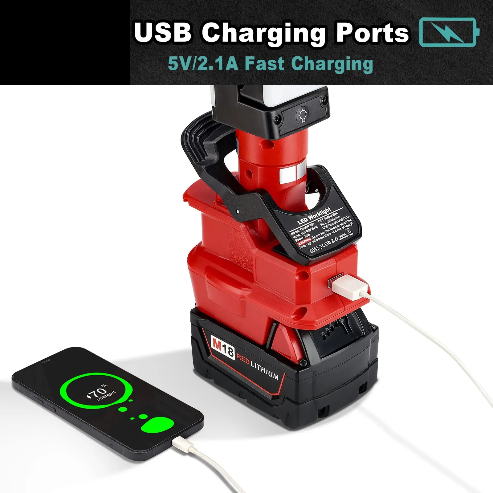 Designed for 18V battery systems, this portable work light also doubles as a USB power bank, making it a practical companion for emergencies and outdoor use.