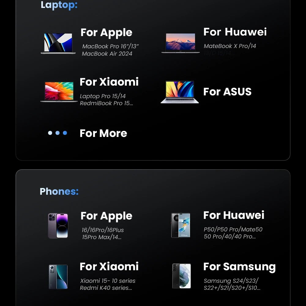 🌐 Universal Compatibility — MacBooks, iPads, Samsung, Windows laptops & more