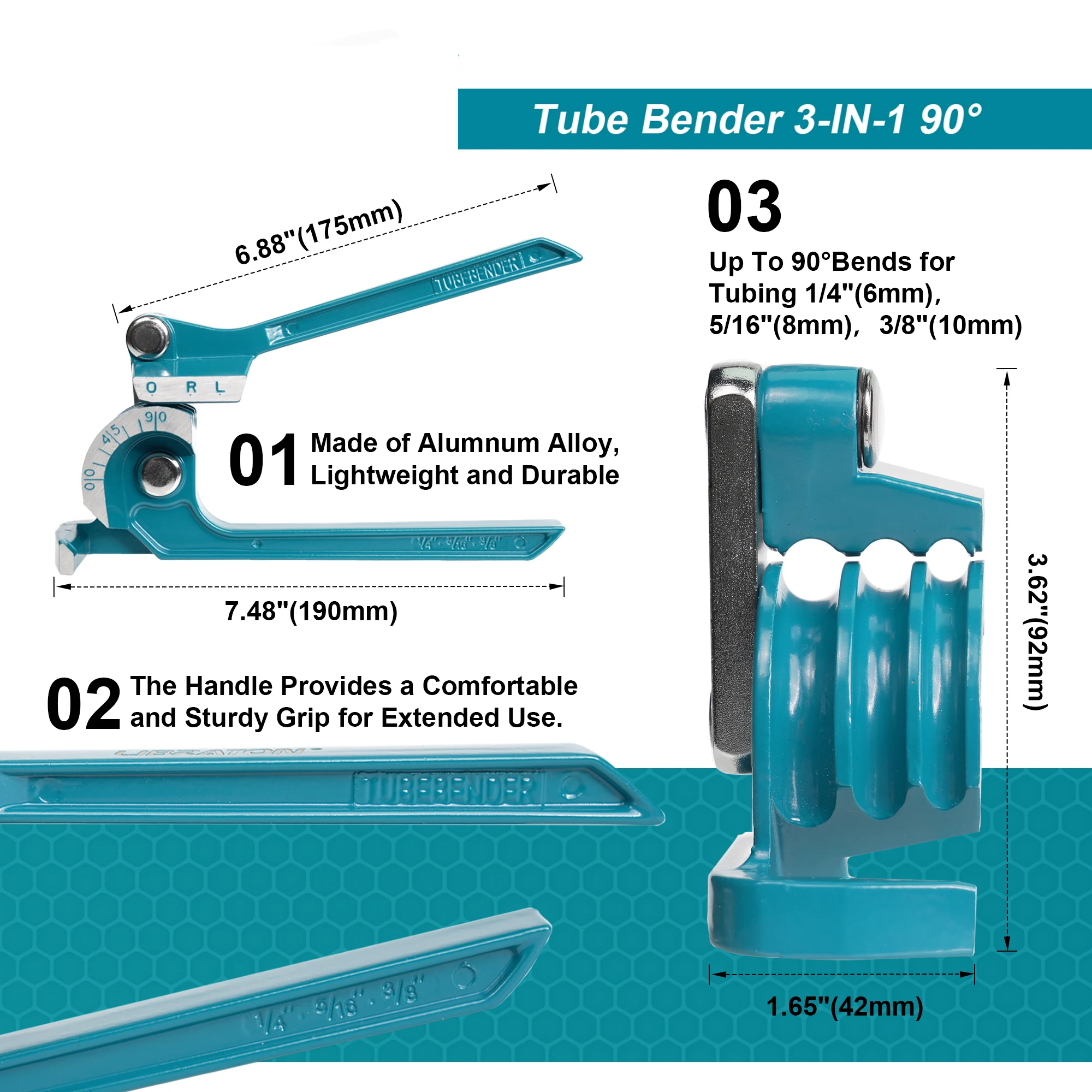 3-IN-1 Versatility – Bend 1/4" (6mm), 5/16" (8mm), and 3/8" (10mm) O.D. tubing with one compact tool.