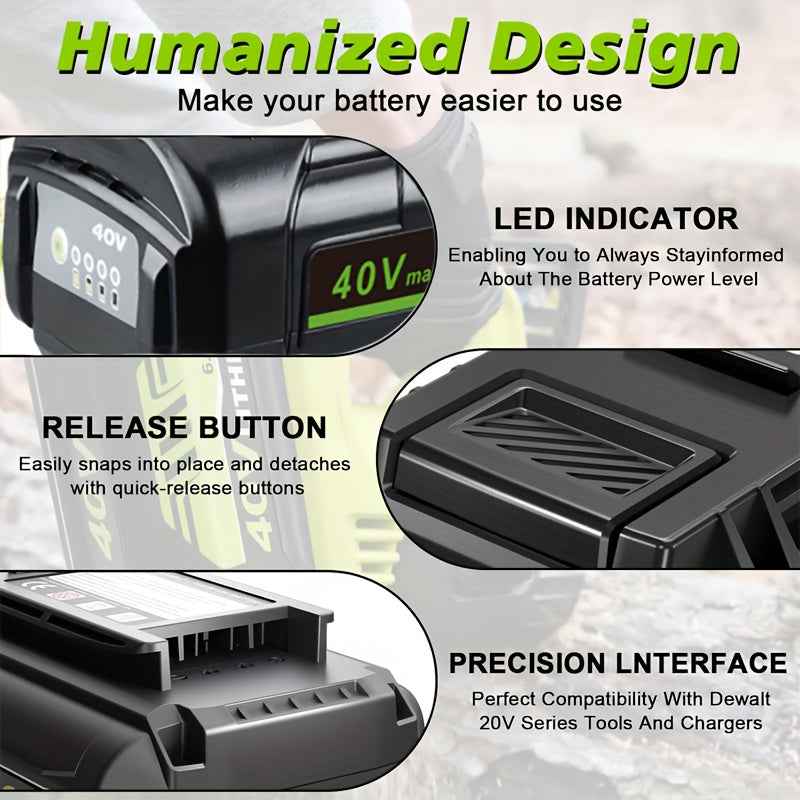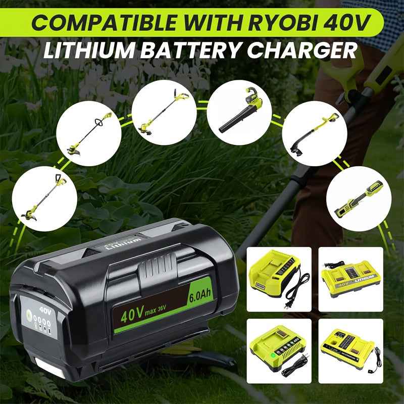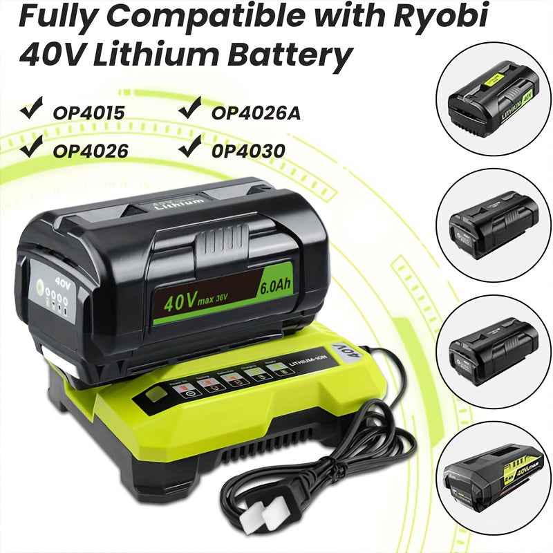 • Charger Compatible – Fits Ryobi 40 V chargers including OP401, OP403, and OP404 series.