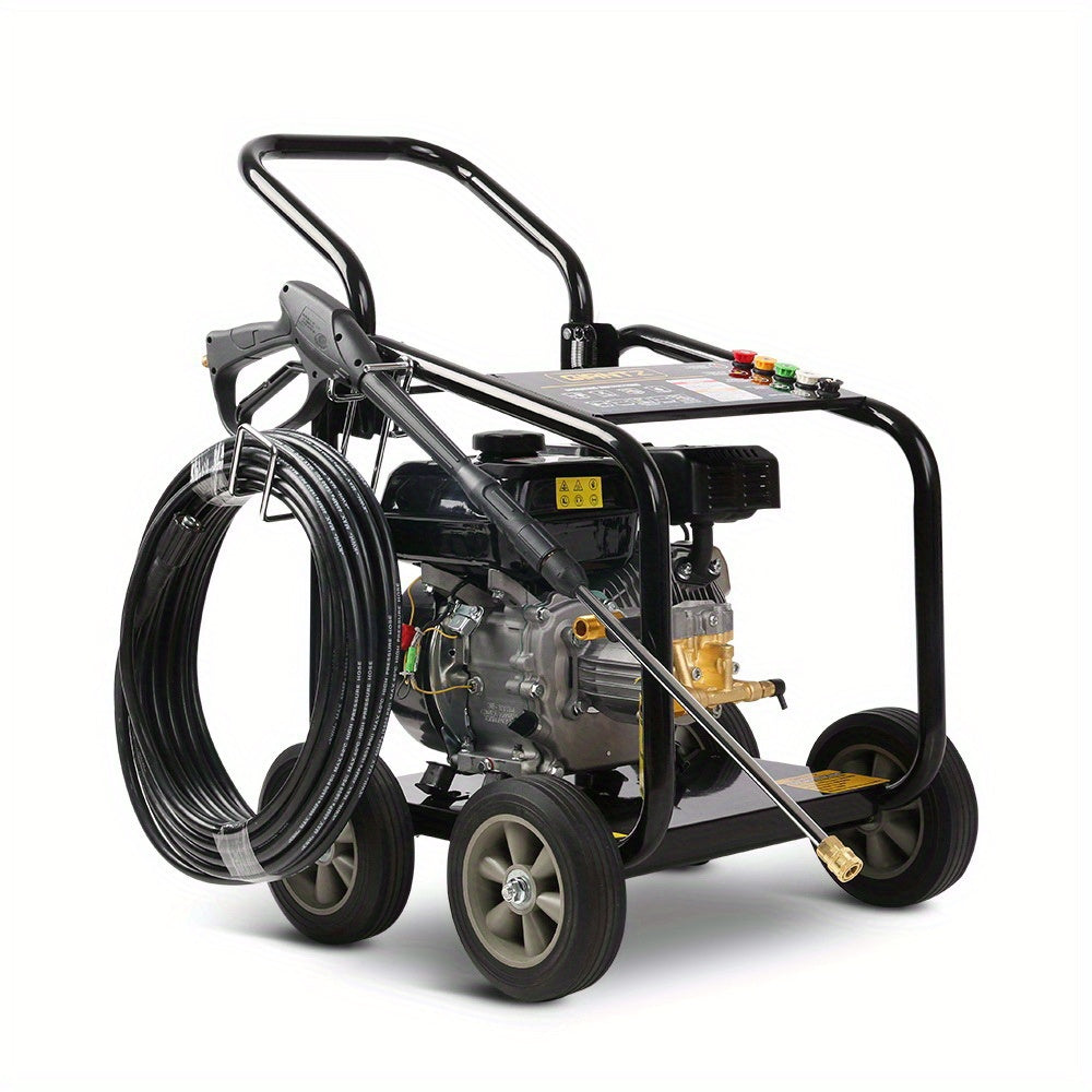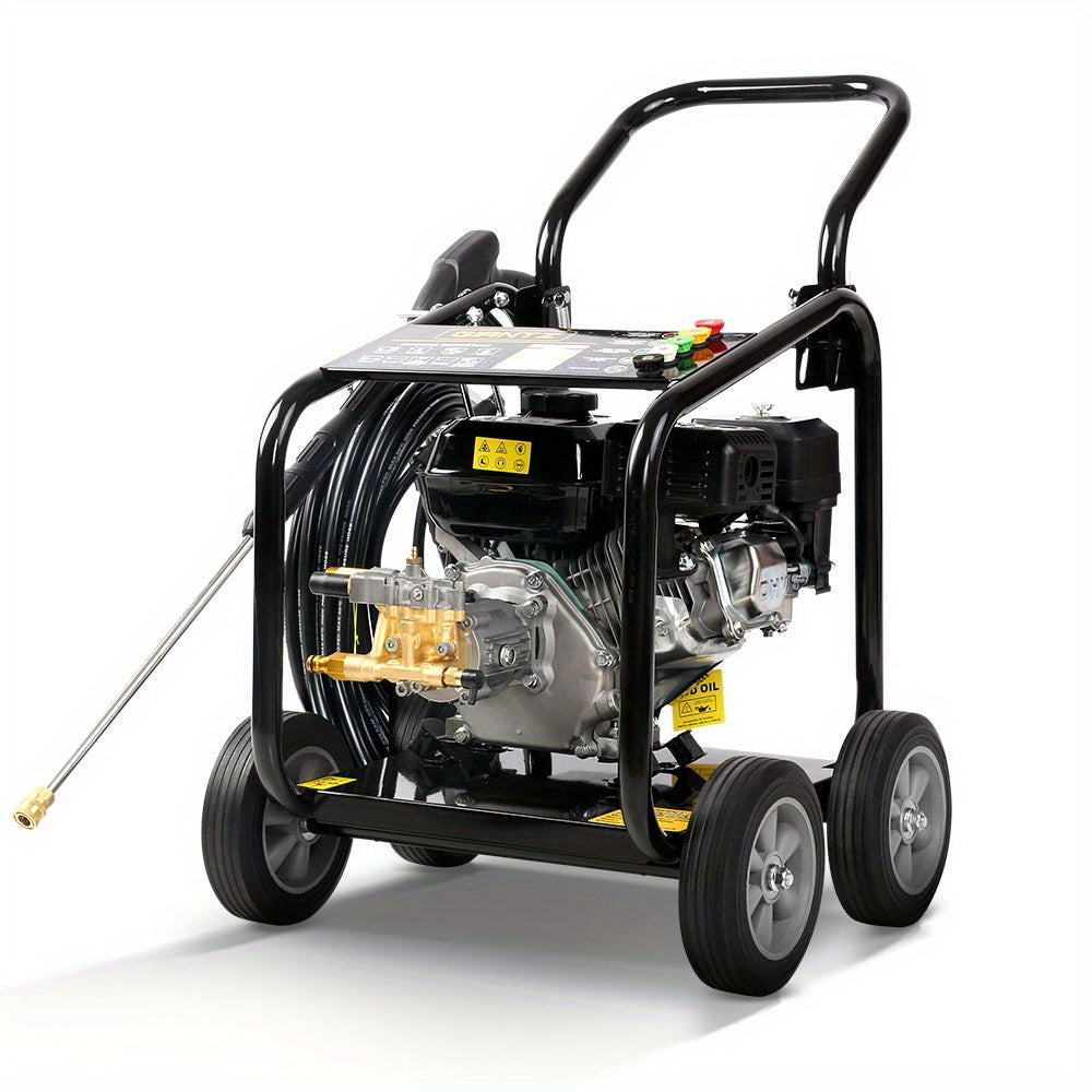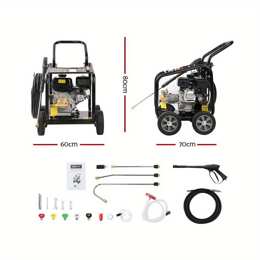 Built for serious cleaning tasks, this petrol pressure washer delivers an impressive 4800PSI peak pressure powered by a 10HP 4-stroke engine, giving you the force needed to strip away mud, grease, stains and built-up grime in seconds. No electricity required — perfect for at-home, off-site and commercial cleaning jobs.