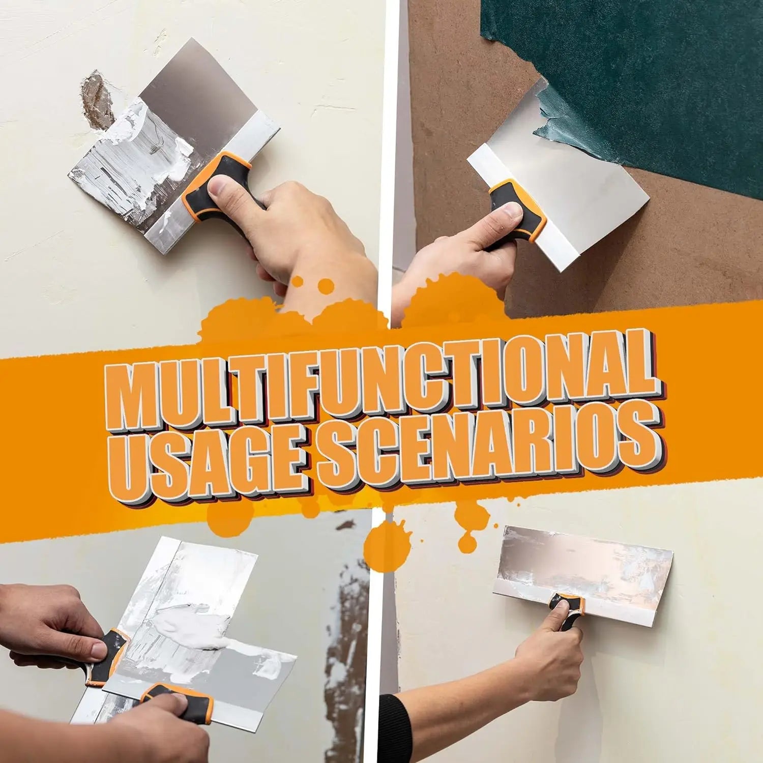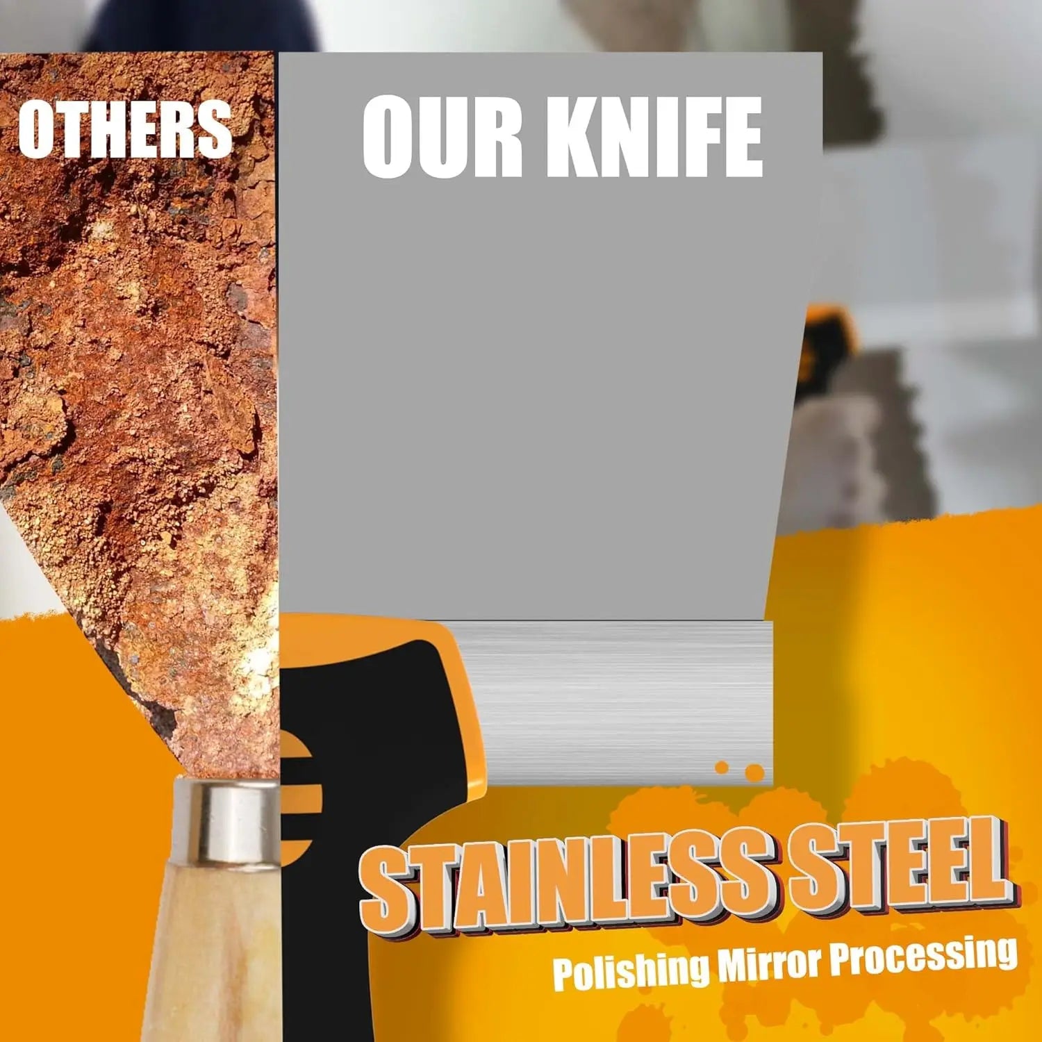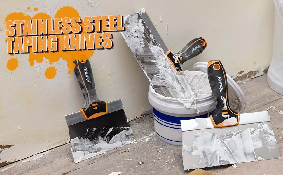 Professional drywall taping knife set designed for smooth finishing, patching holes, spreading compound, and surface preparation. Built for durability, flexibility, and all-day comfort.