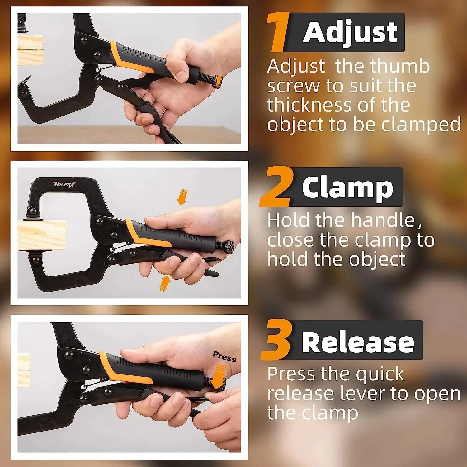Quick Release Lever – Easily open the clamp with a single press for faster workflow.