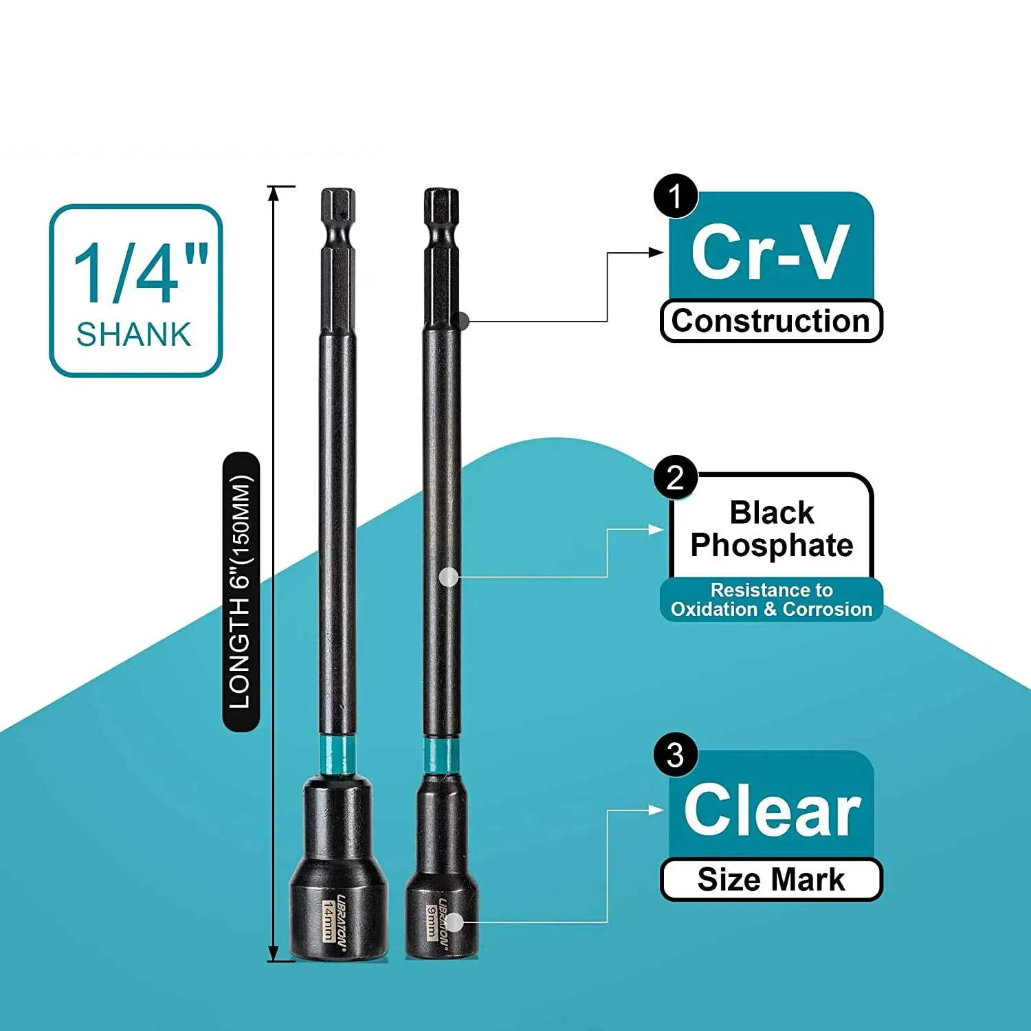 6” Long Shank Design: Extra length for hard-to-reach spaces, ideal for impact drills or hand use.