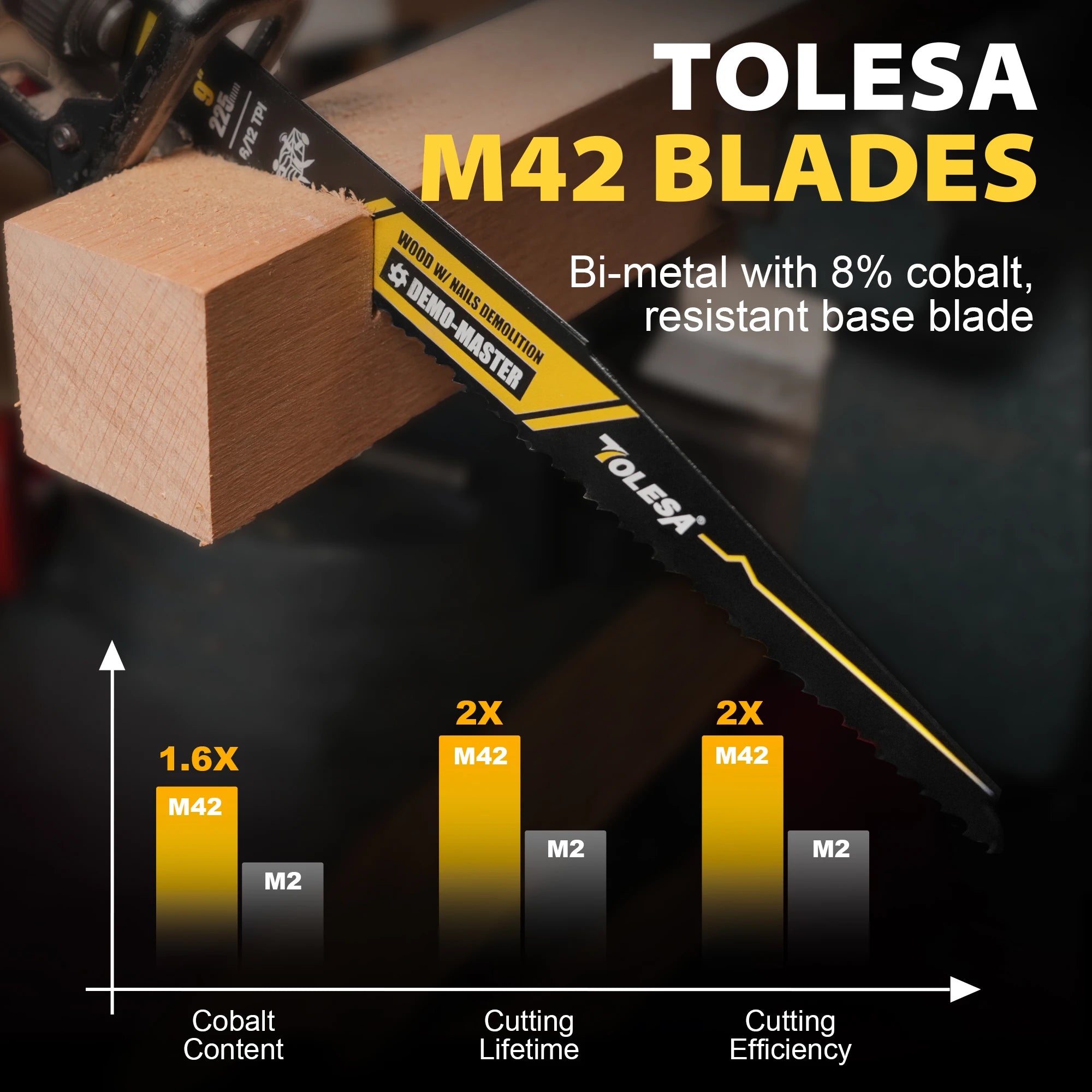 Blade Material: Bi-Metal Alloy with 8% Cobalt (M42)