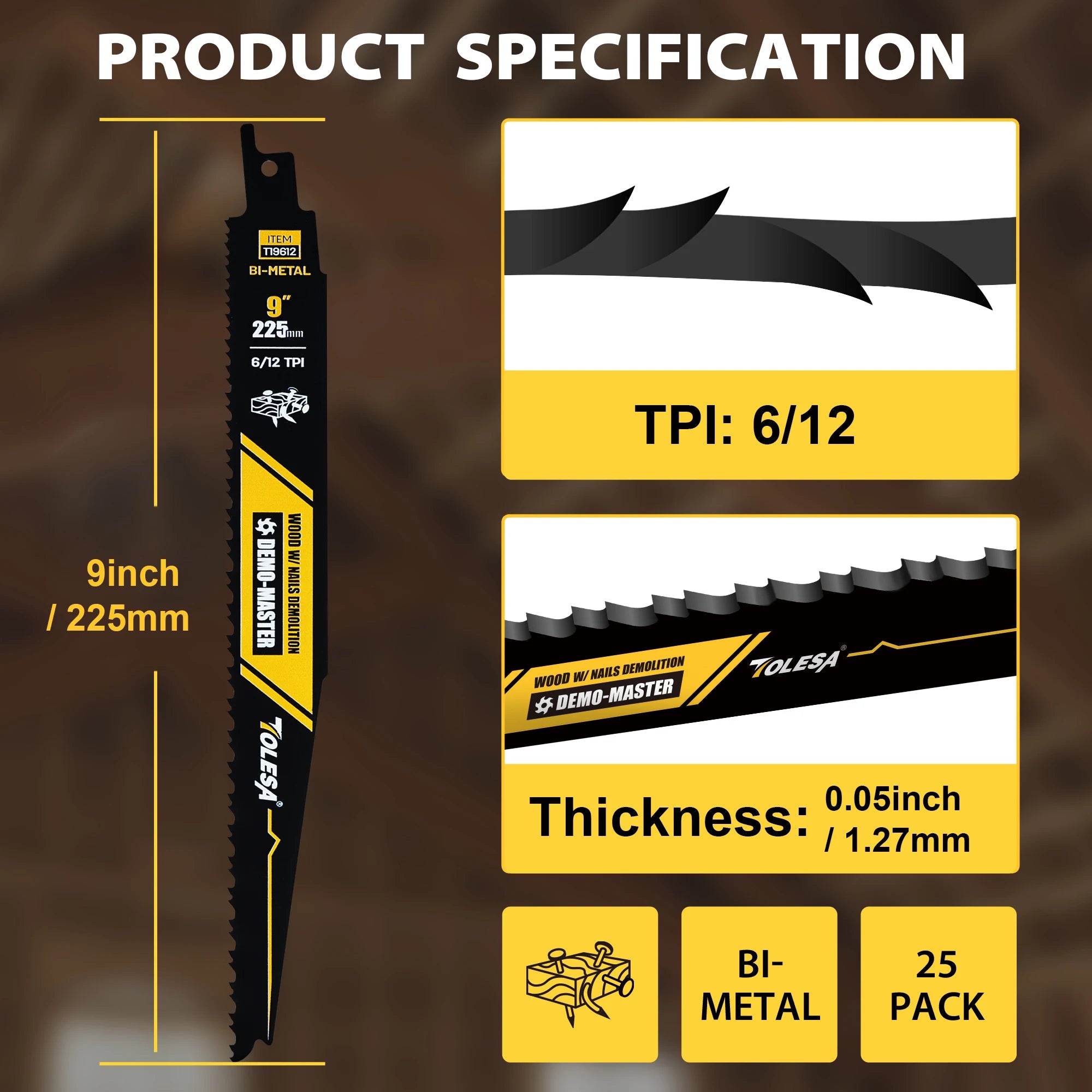 5 × 9-Inch Bi-Metal Reciprocating Saw Blades (6/12 TPI)
