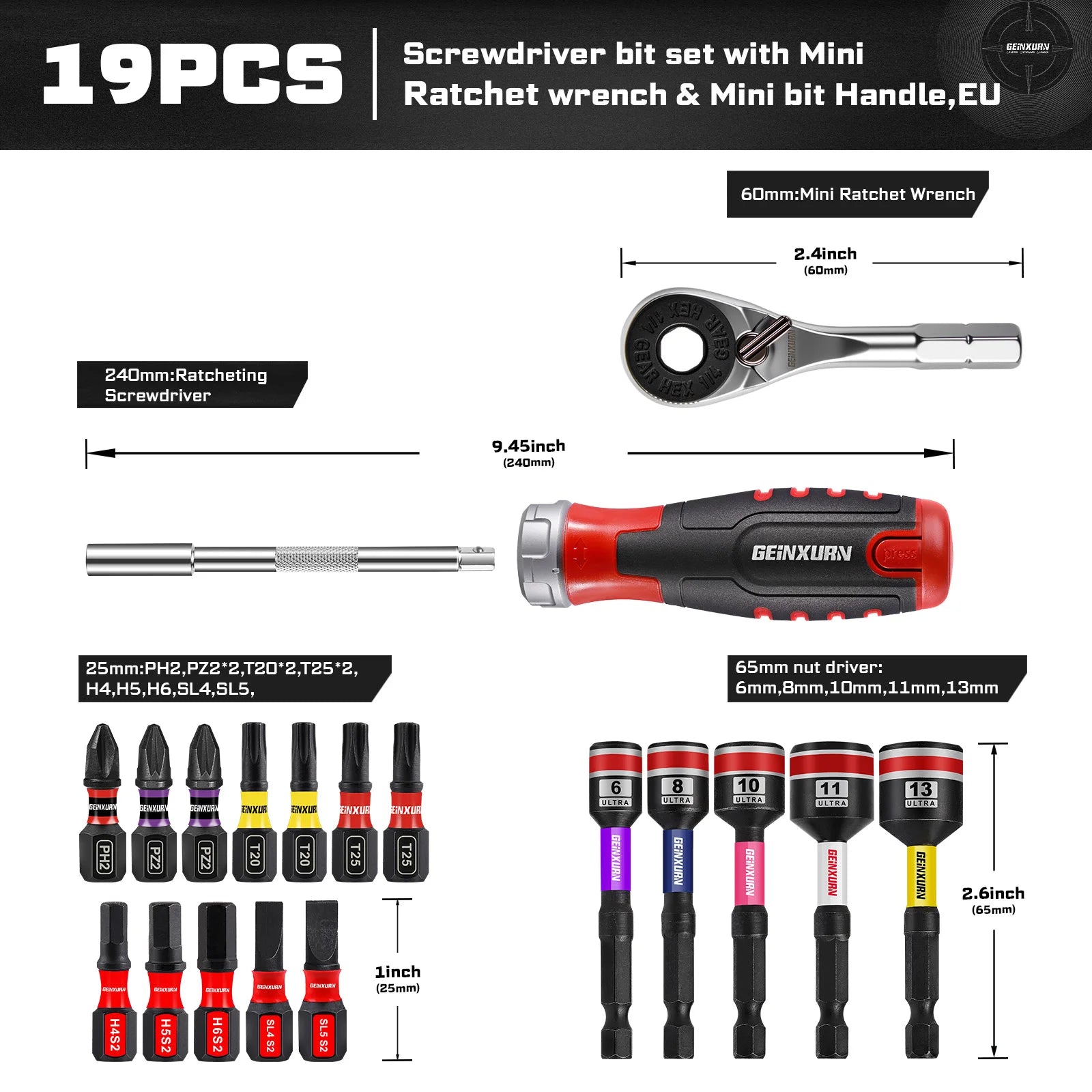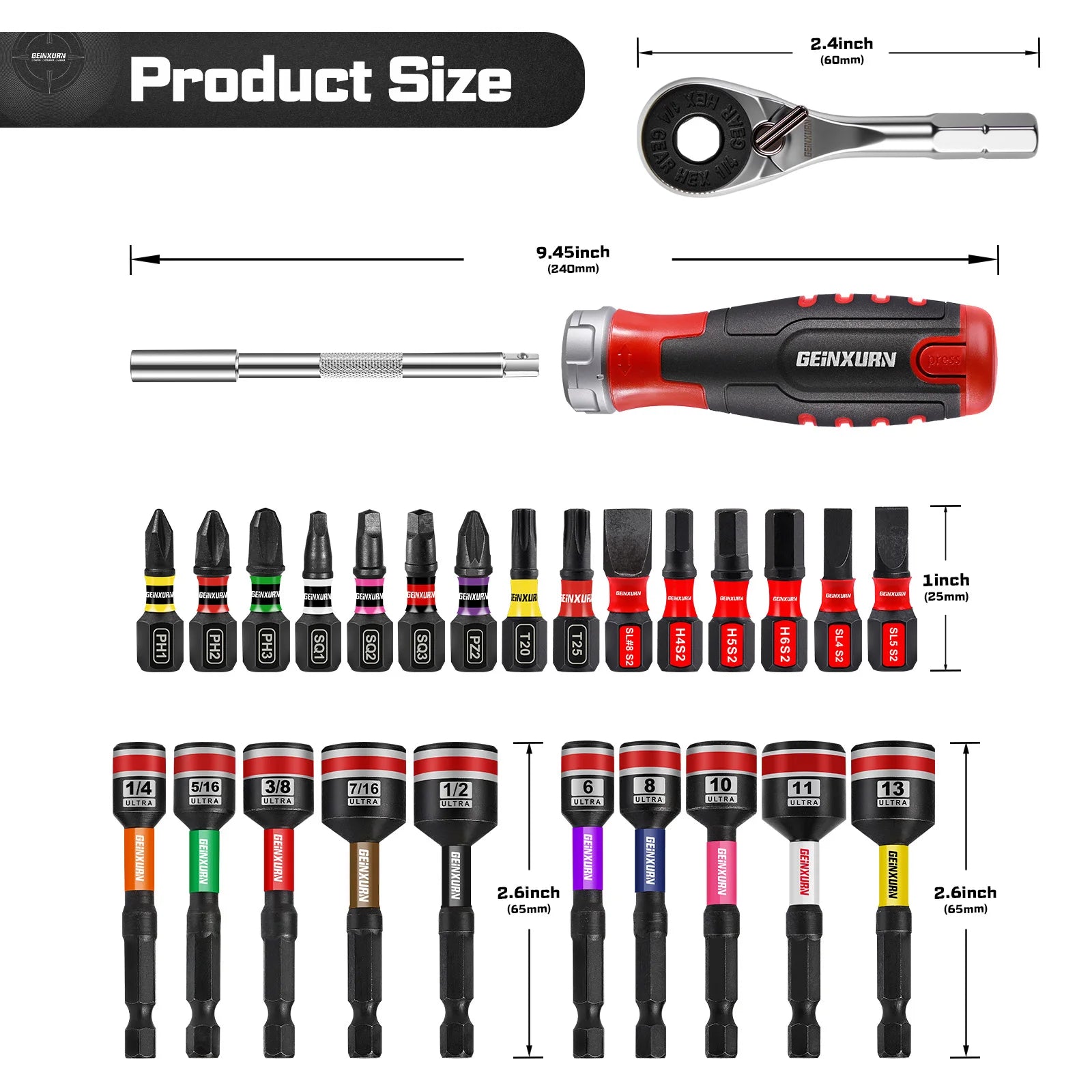 • 1 x 9.45" Ratchet Bit Handle