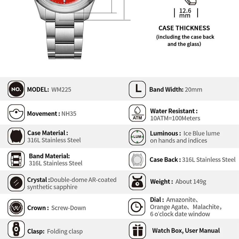 • NH35 automatic movement — self-winding accuracy with dependable timekeeping