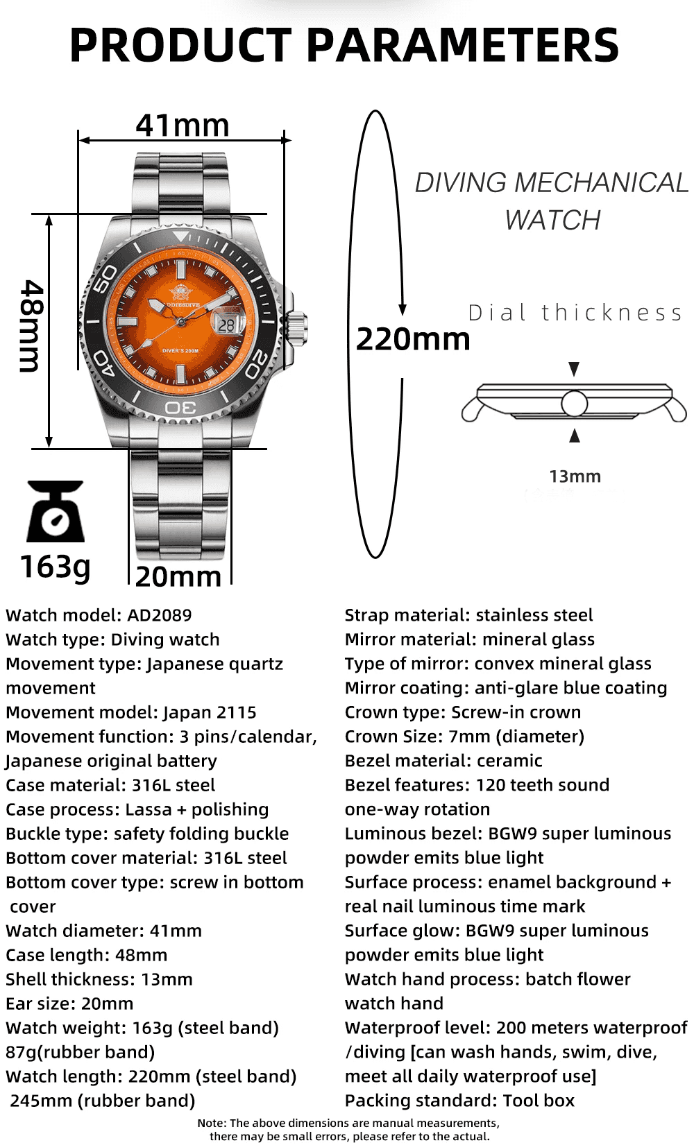 • 1 × 41 mm Diver’s Quartz Wristwatch (AD2089)