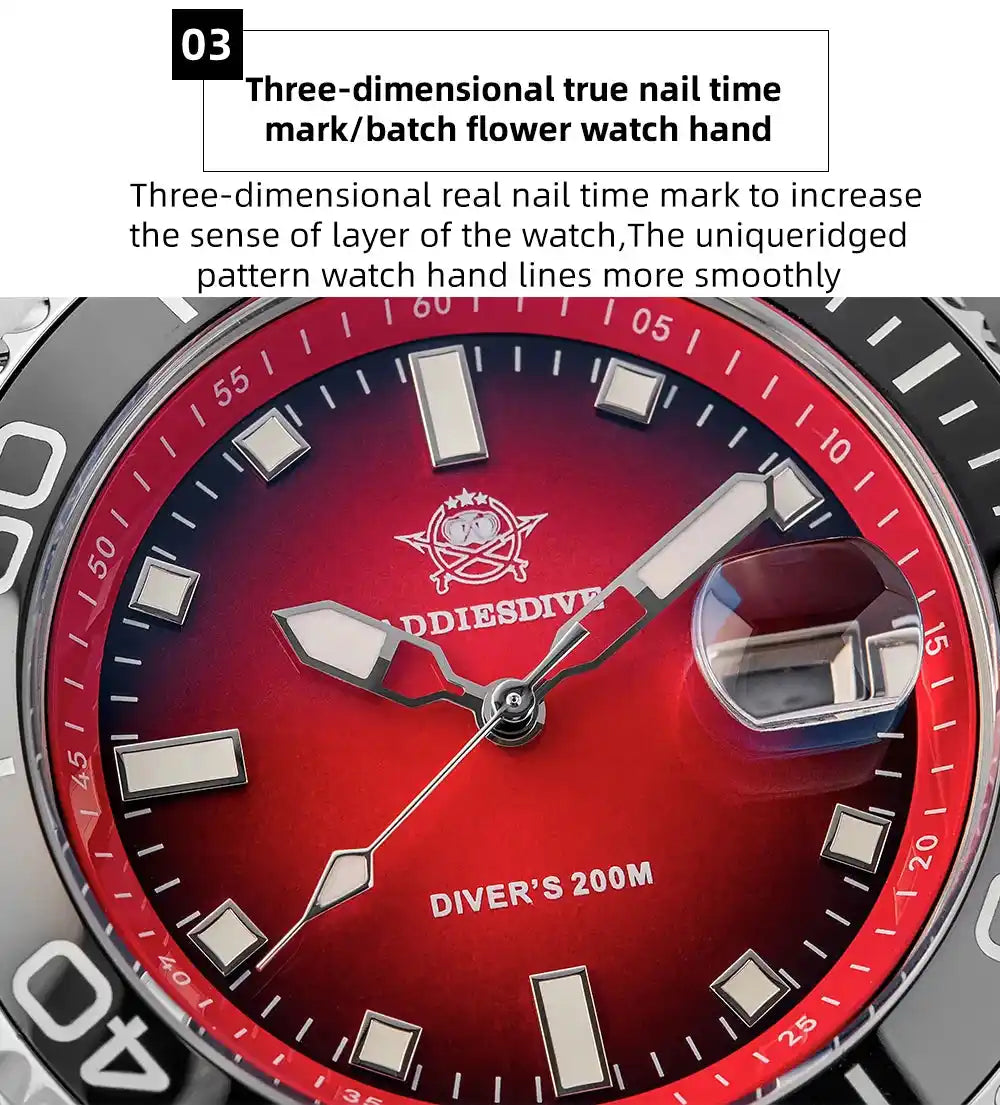 • Screw-in Crown & Solid Back Cover – Enhanced sealing and pressure protection up to 200 m.