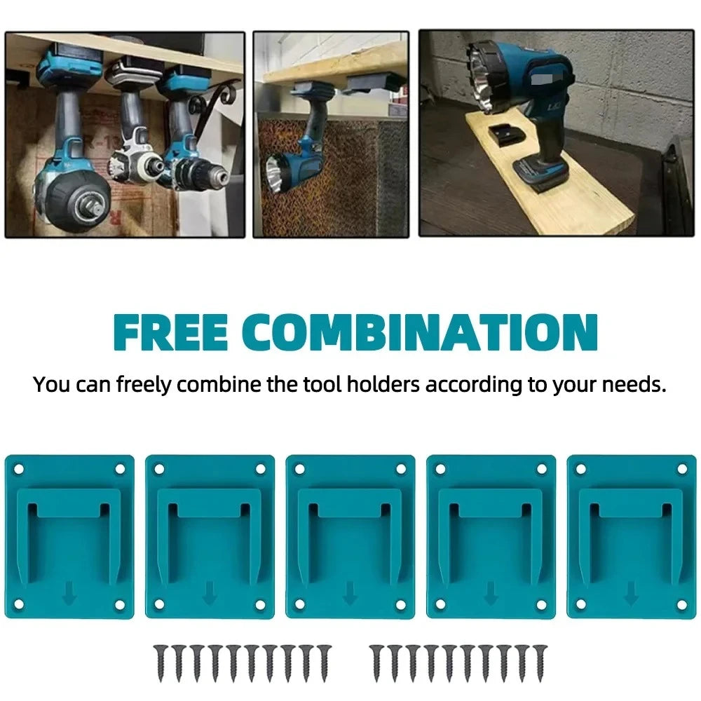 Wall-Mounted Tool Organizer Compatible with Makita, DeWalt, Bosch & Milwaukee 18V Tools