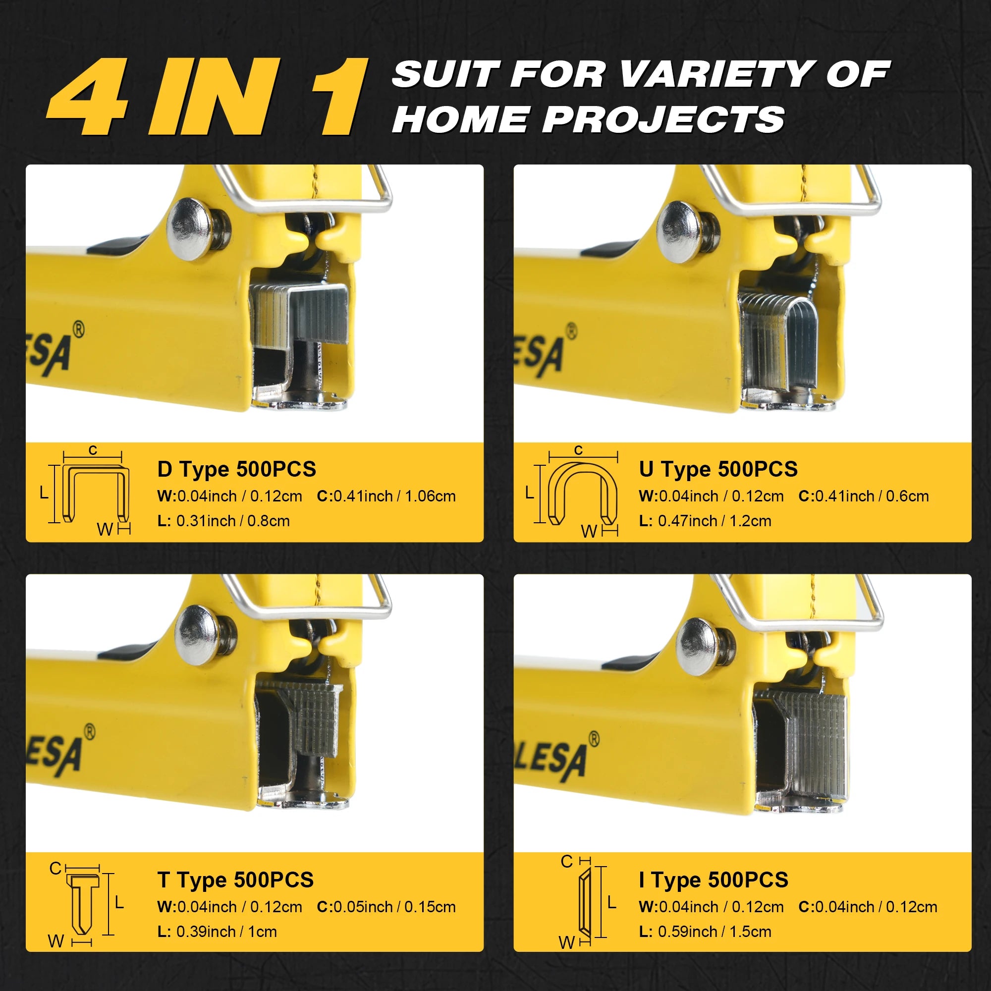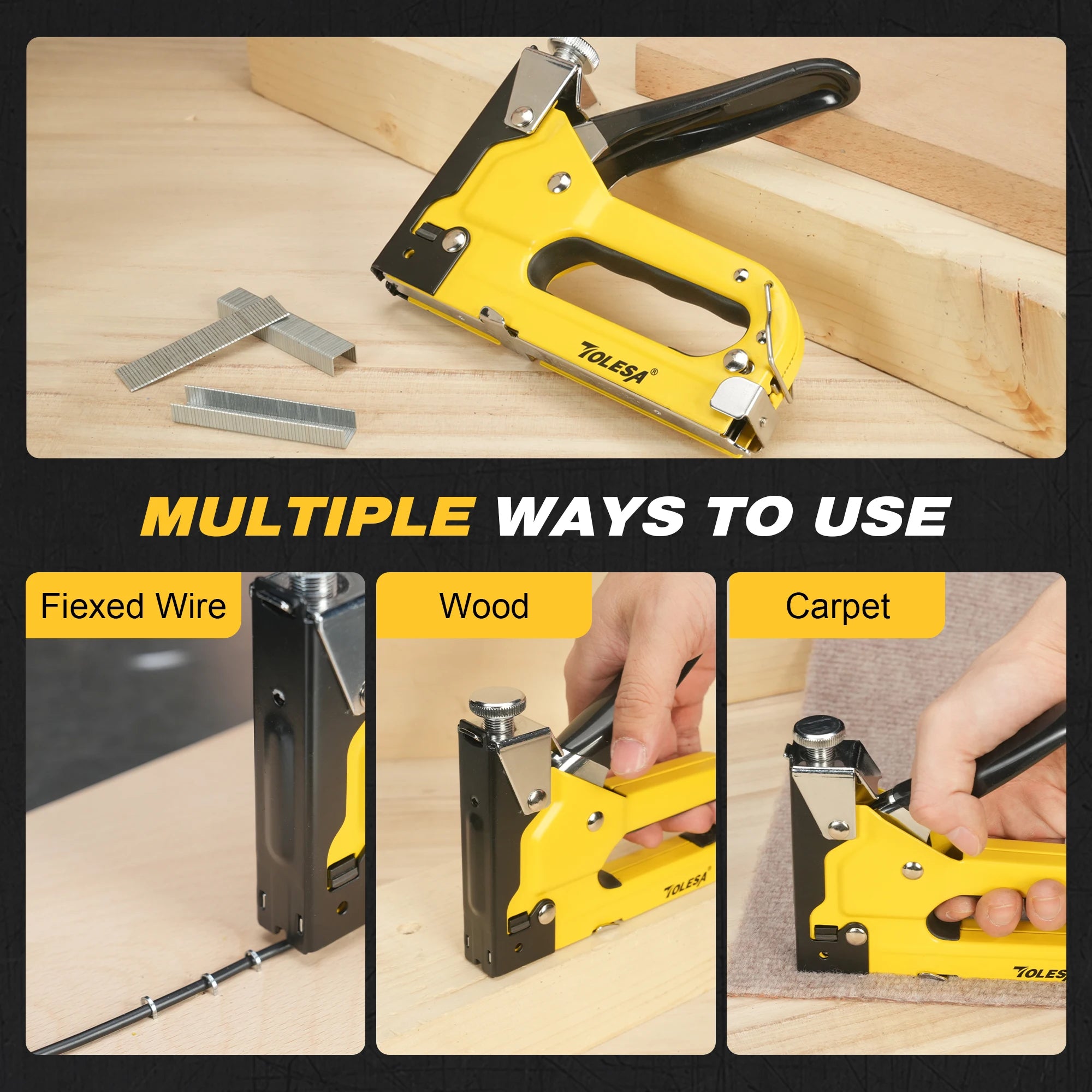 This heavy-duty manual staple gun kit is designed for versatility, durability, and ease of use. With support for four staple and nail types, adjustable power control, and an all-steel construction, it’s ideal for upholstery, carpentry, crafts, repairs, and home improvement projects.