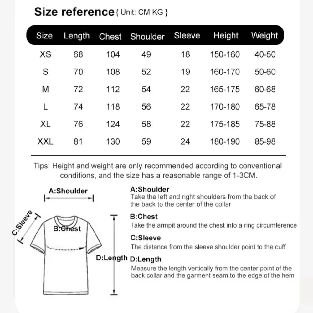Asian sizes run smaller than EU/US/AU standards — choose one size up for a relaxed or oversized fit. Please allow 1–3 cm variance due to manual measurement.