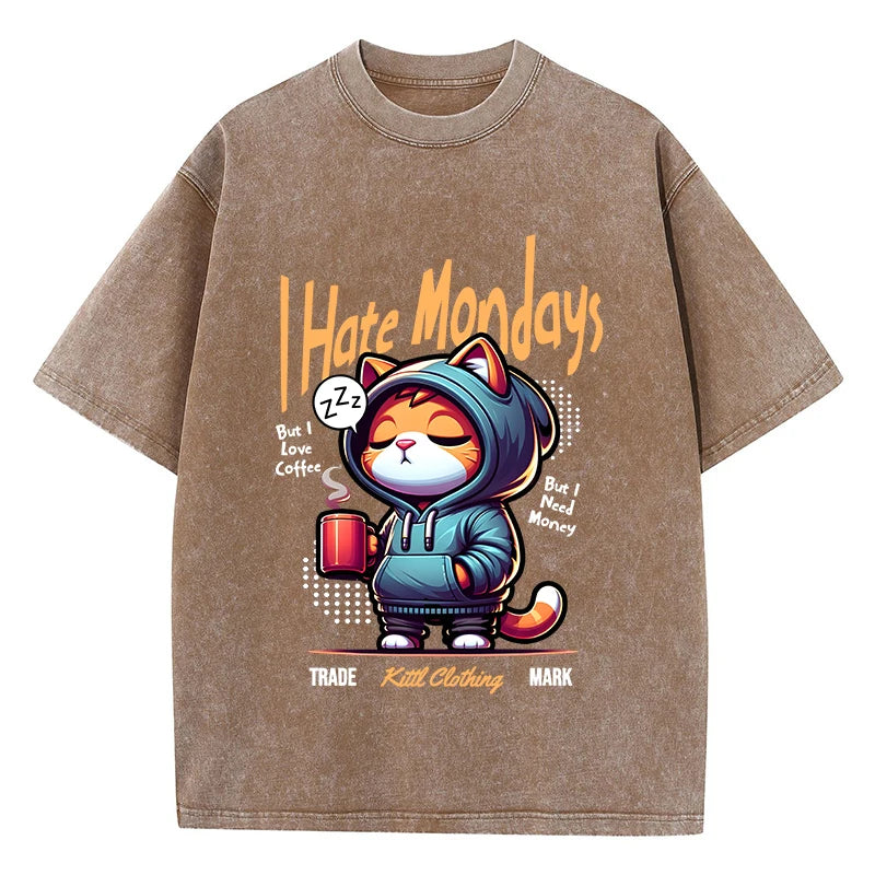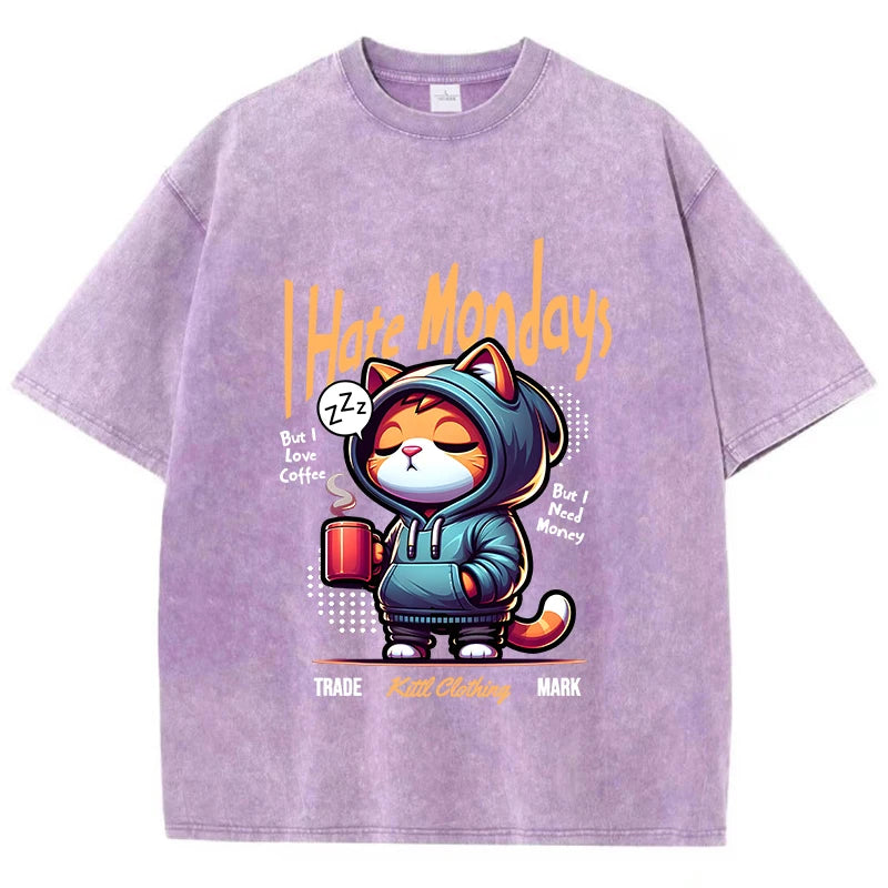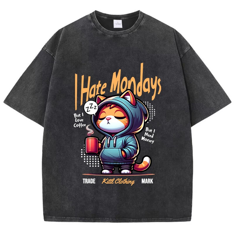 Funny “I Hate Mondays” Graphic — bold cartoon print adds humour and personality.