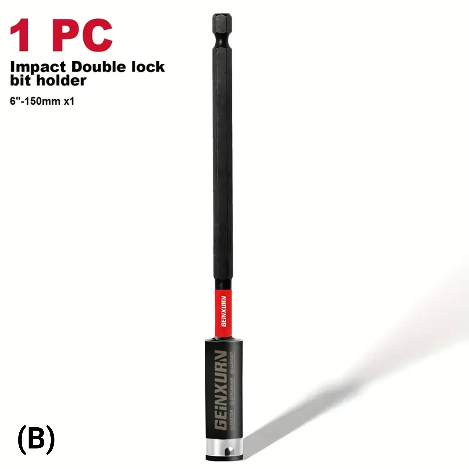 Enhance your toolkit with this impact double lock magnetic bit holder set, designed for precision, strength, and versatile use. Crafted from premium S2 alloy steel and Cr-V steel, this bit holder securely grips bits with its internal magnetic tube, reducing wobble and preventing accidental drops. The impact-ready design absorbs torque peaks, making it perfect for high-torque screw driving tasks. Compatible with power drills, impact drivers, manual screwdrivers, and T-handle drivers.