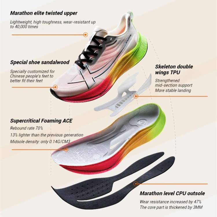 • High-Performance Upper – Premium TPU yarn combined with PU + fabric offers a secure, supportive fit while maintaining breathability for long-distance comfort.