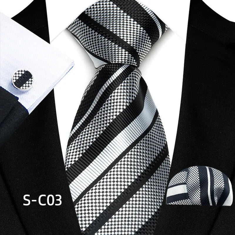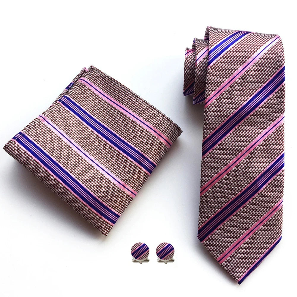 Discover the Luxury Business Tie Set, a premium 8cm striped necktie designed for the modern professional. Crafted for office days, formal meetings, and special occasions, it pairs a bold striped pattern with timeless craftsmanship. The set includes a coordinating handkerchief and cufflinks, delivering a complete, polished look with comfortable drape and enduring style.
