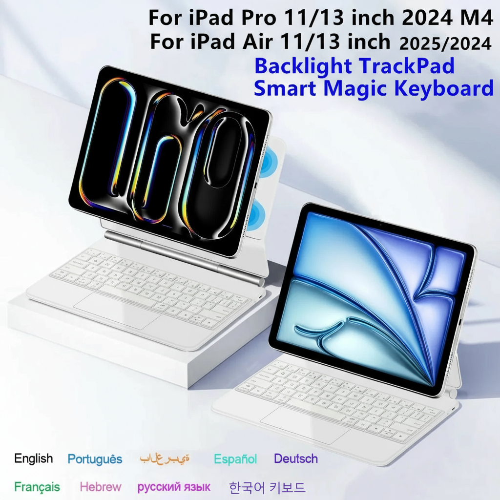 Transform your iPad into a true everyday workstation with the Magic Keyboard for iPad Series. This slim, magnetic keyboard case delivers a laptop-like typing experience, multi-gesture touch panel, and adjustable viewing angles — perfect for study, travel, office days and late-night workflow sprints. Built from premium anti-fouling PU and reinforced with a durable hinge, it keeps your iPad protected while boosting your productivity and comfort on the go.