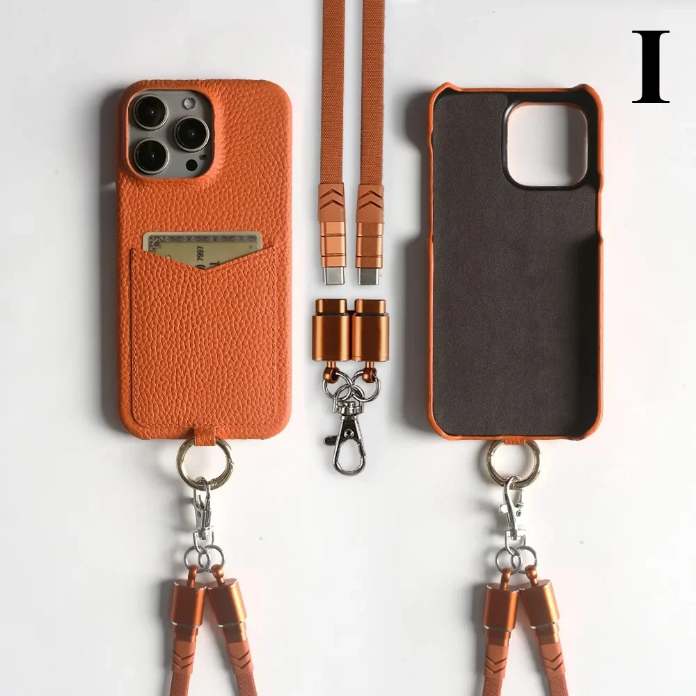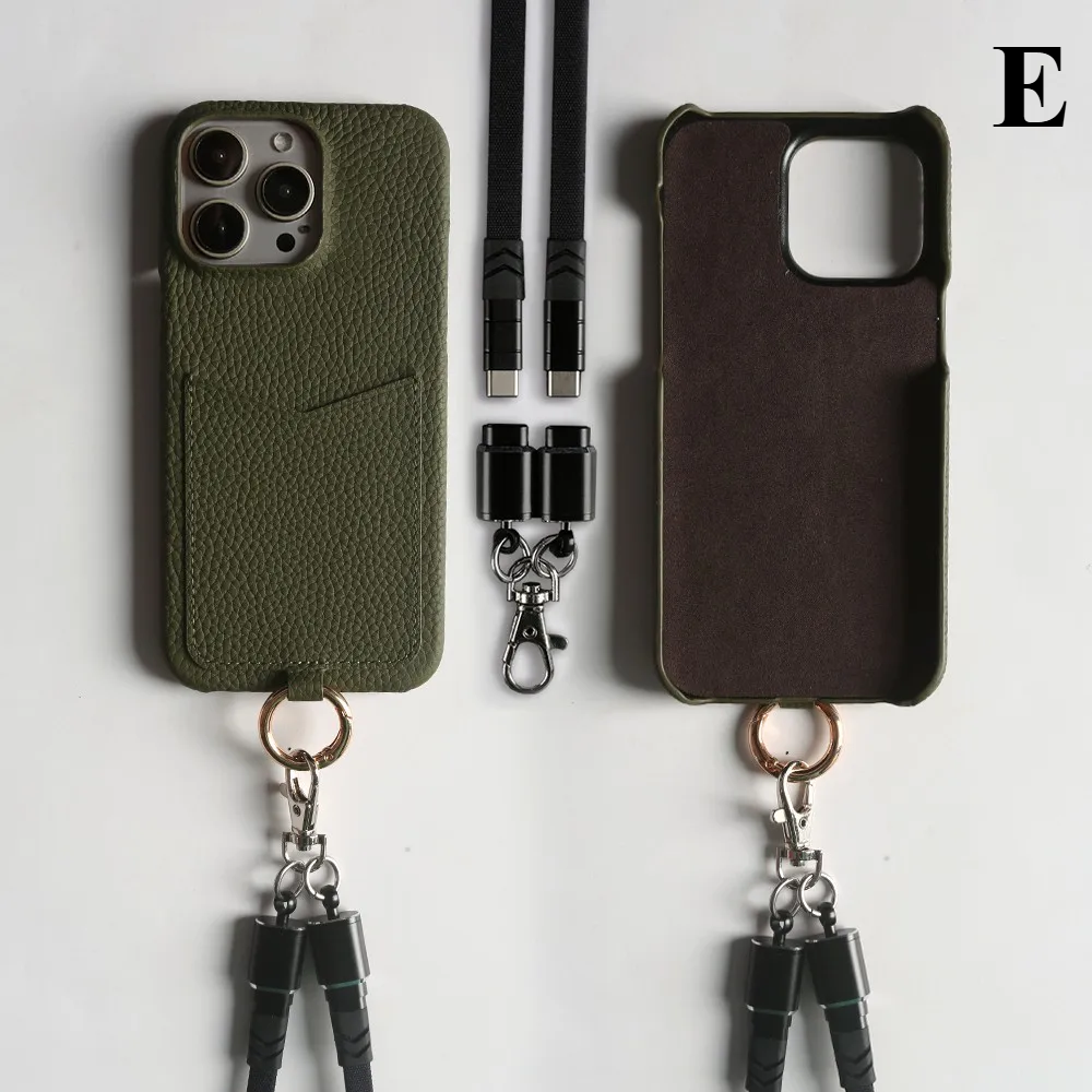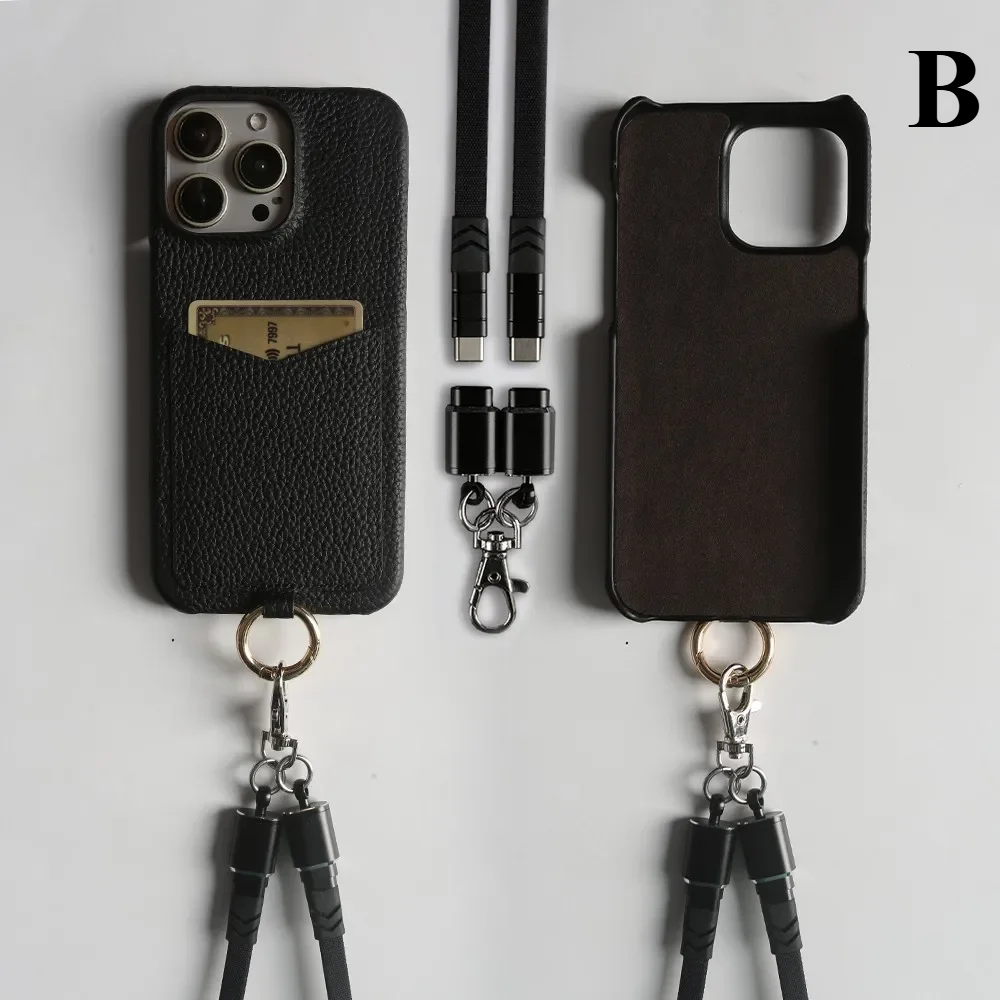 The Multifunctional Leather Crossbody Case pairs full-grain leather craftsmanship with a built-in charging cable and hands-free lanyard, giving your iPhone 16 Pro Max premium protection and instant practicality.
