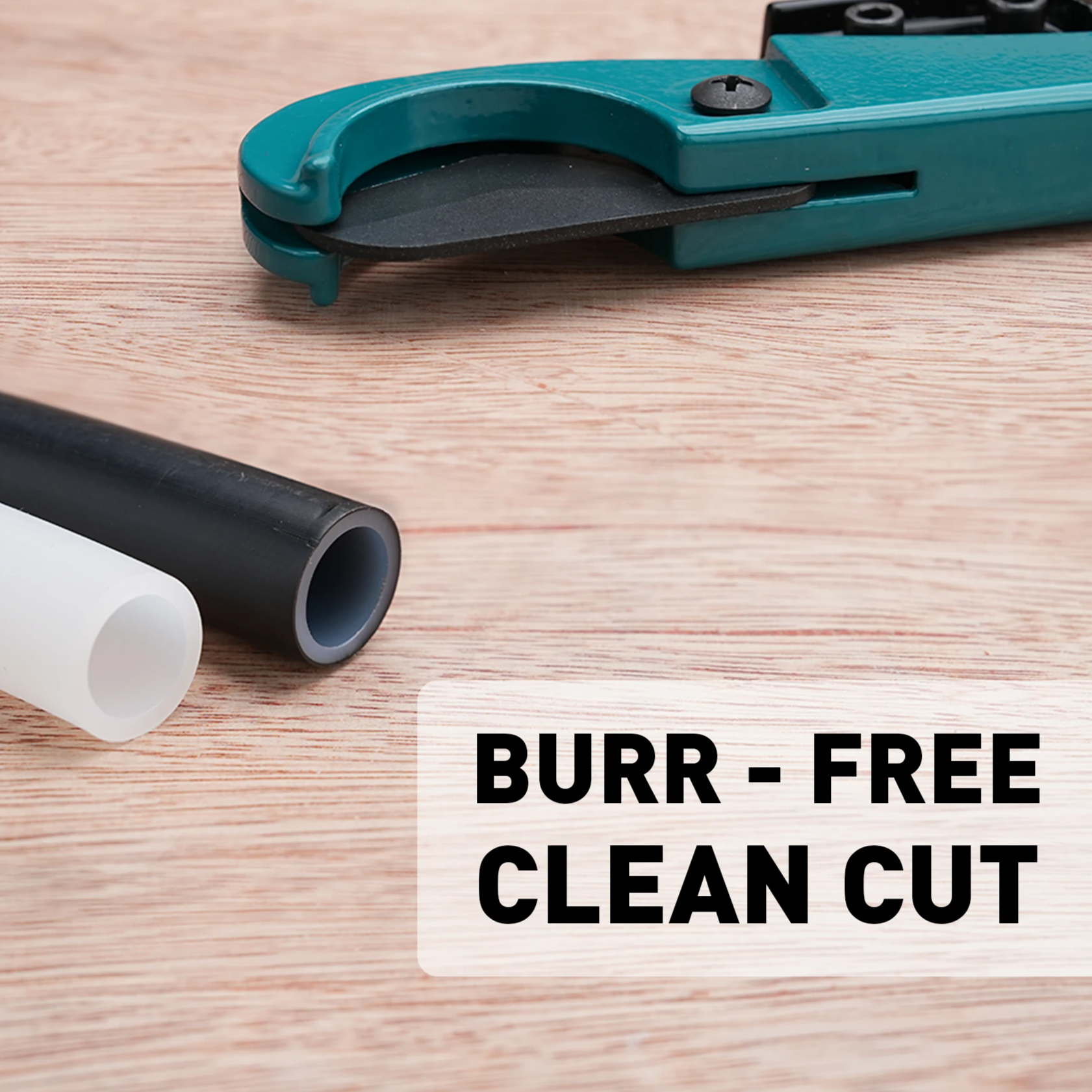 Clean Cuts Every Time – Designed for burr-free and straight cuts, perfect for PEX push-to-connect fittings or brass crimp fittings.