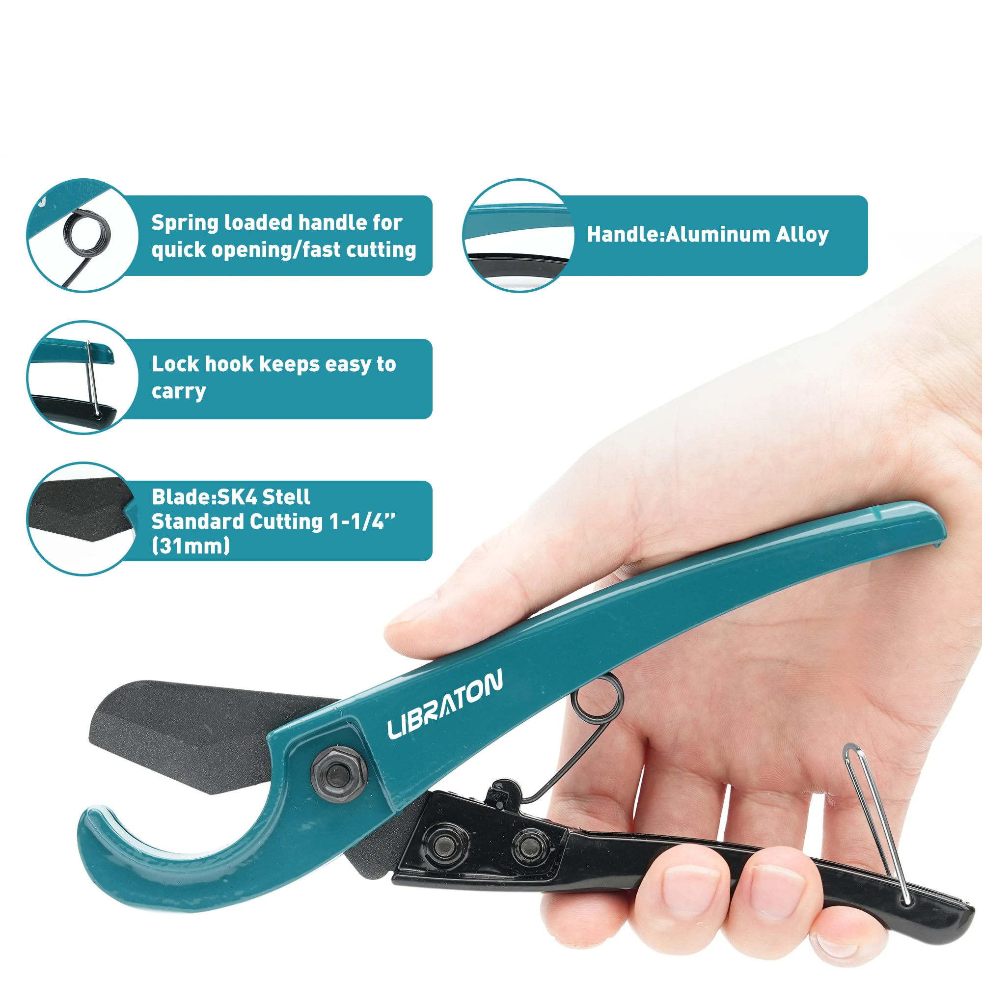 Cut PEX, PVC, PP-R, and other plastic pipes effortlessly with the LIBRATON PEX Pipe Cutter. Compact, spring-loaded, and built from durable SK4 steel, this tool ensures smooth, clean, and burr-free cuts every time. Perfect for professional plumbers, electricians, or DIY home projects.