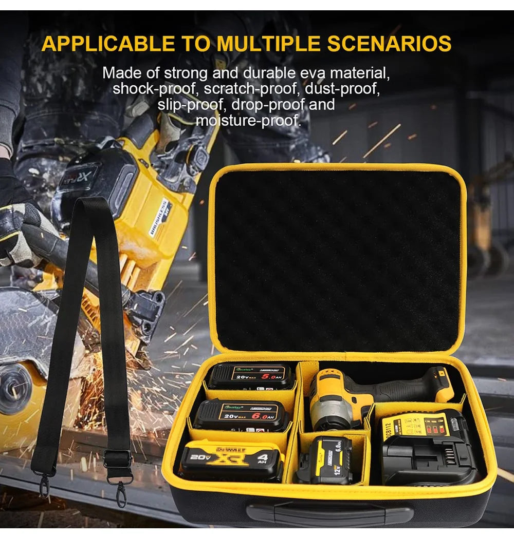 • DIY Partition – Adjustable compartments to organize different batteries, chargers, and tools