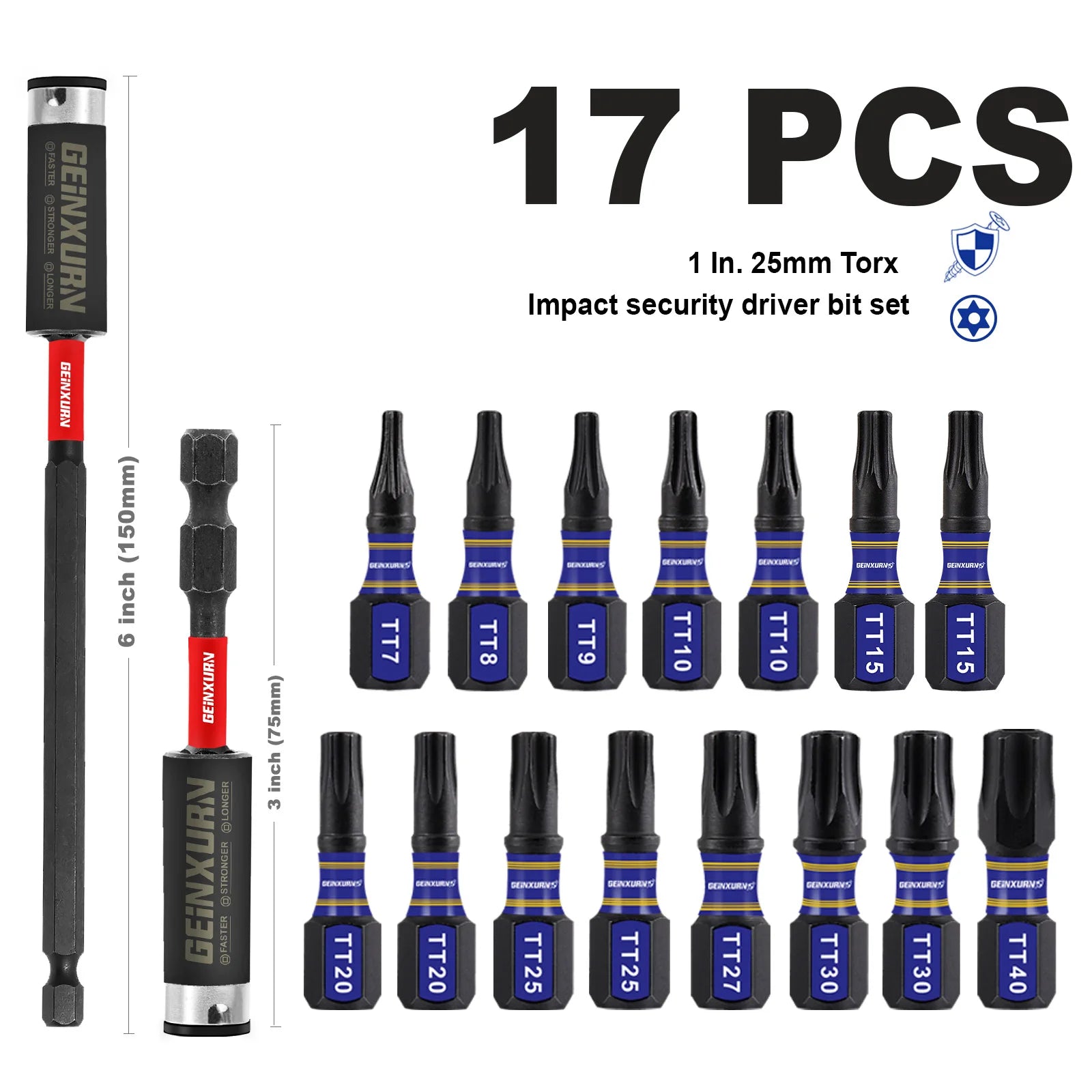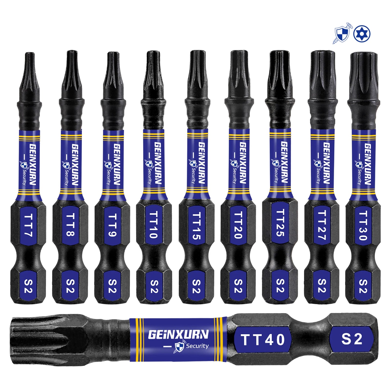 • Security Torx Bits: TT7, TT8, TT9, TT10, TT15, TT20, TT25, TT27, TT30, TT40
