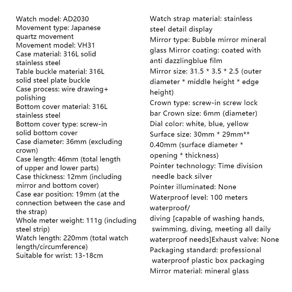 • 1 × Diver’s Quartz Wristwatch (Model AD2030)