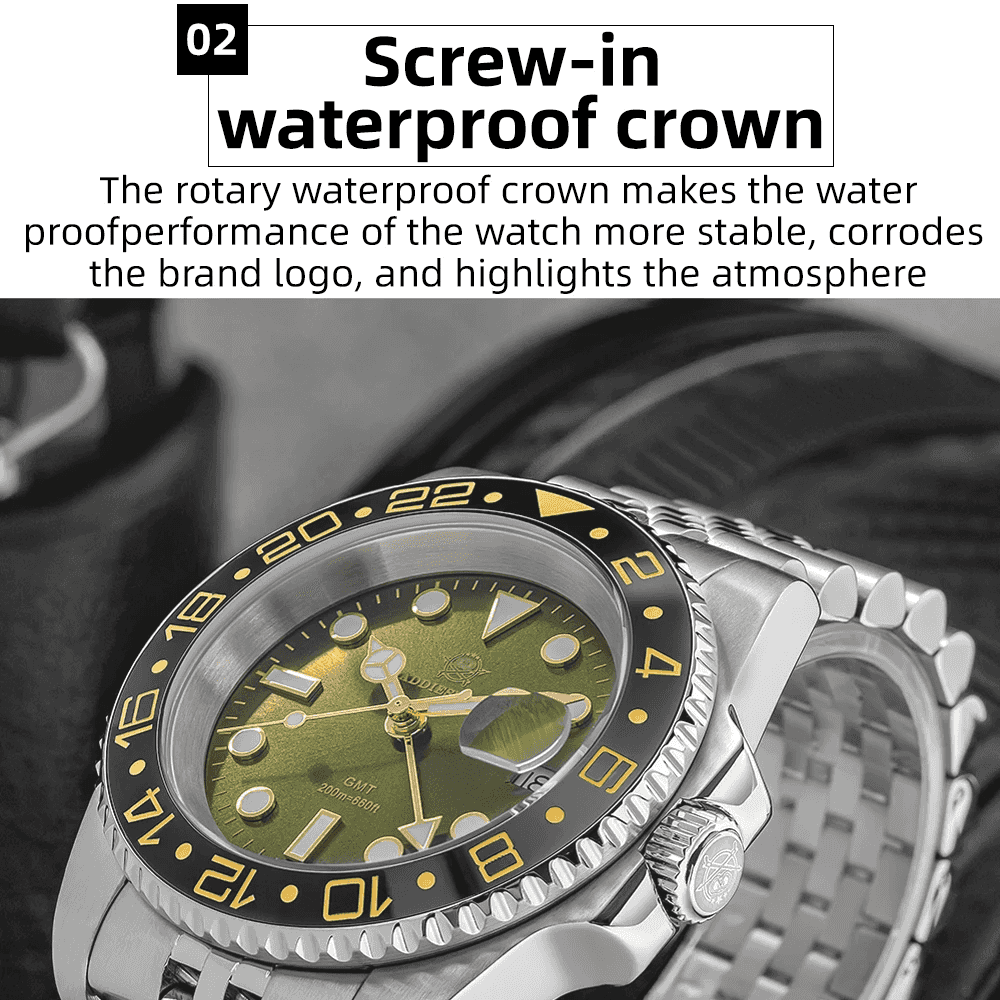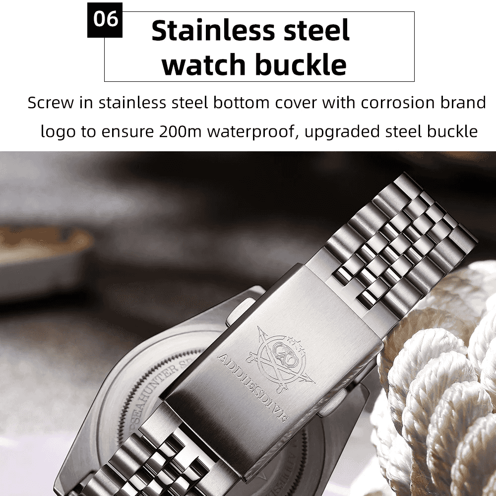 • Screw-In Crown & Solid Back Cover – Enhanced sealing for professional-grade waterproofing.