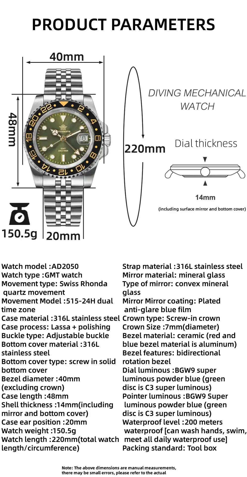 • 1 × GMT Diver’s Quartz Watch (Model AD2050)