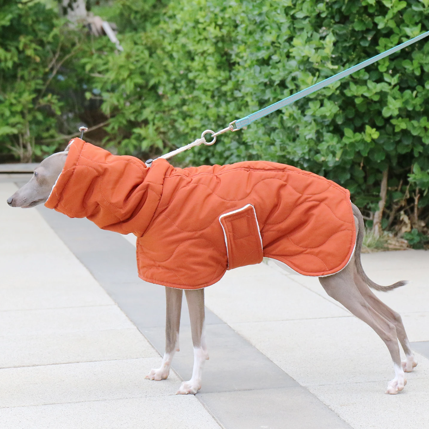 The Quilted Turtle-Neck Dog Coat is designed specifically for slender breeds like Italian Greyhounds and Whippets, providing maximum insulation without restricting movement.